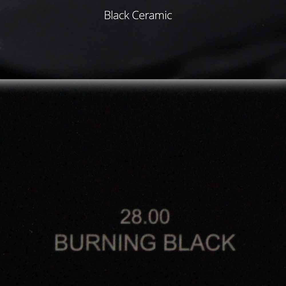 - Burning Black: matná černá povrchová úprava s černými keramickými vložkami na rukojetích;