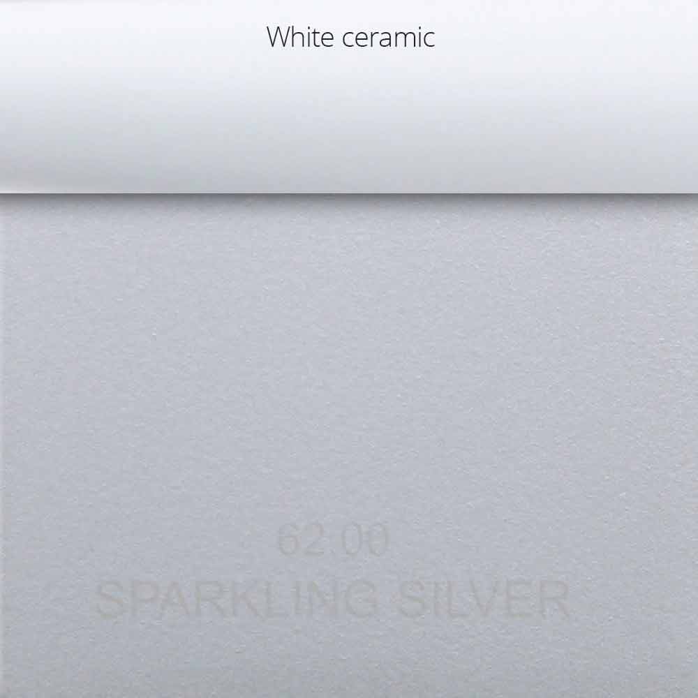 - Šumivé stříbro: matný stříbrný kovový povrch s bílými keramickými vložkami na rukojetích;