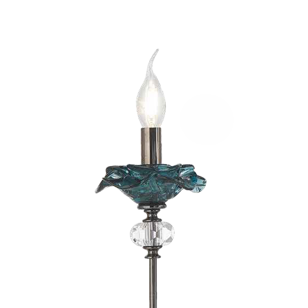 - Tělo z průhledného skla - detaily v modrozeleném skle - leštěný kov;
