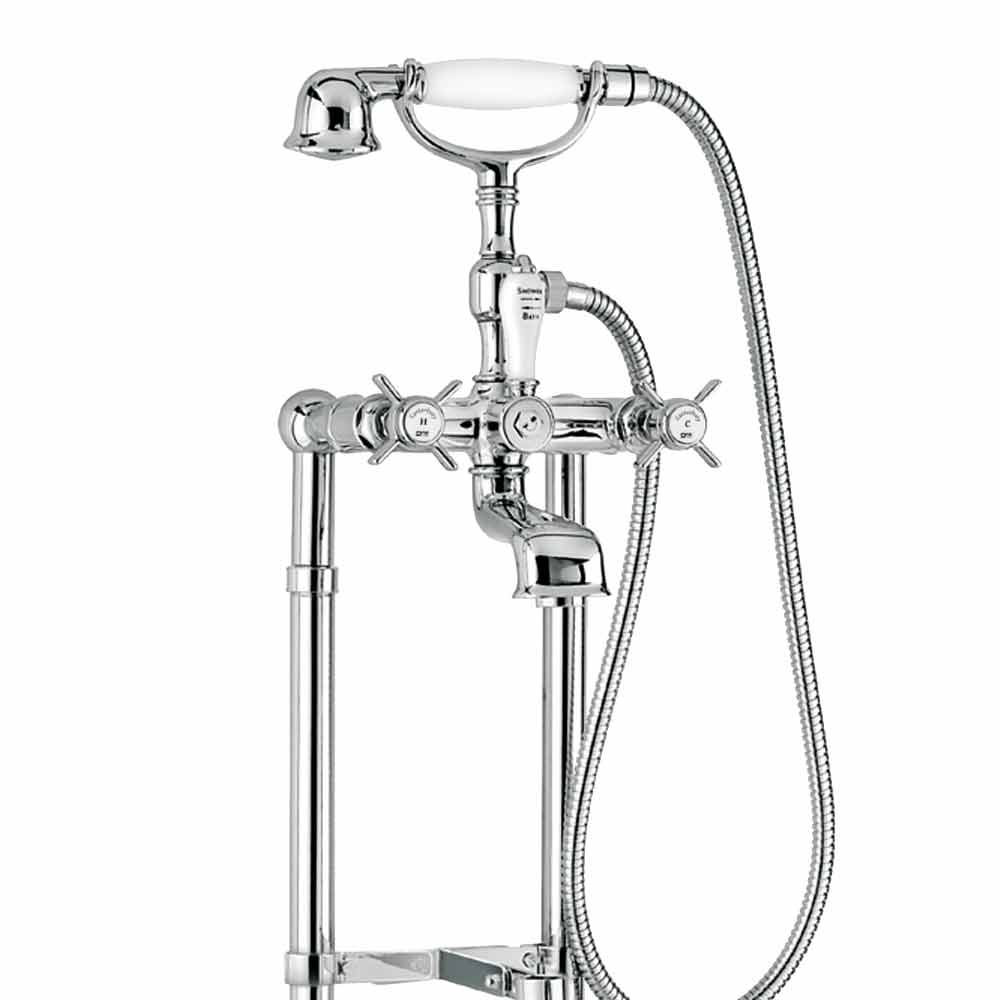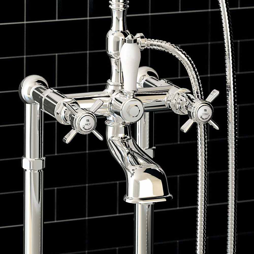 Venkovní vana na kohoutky na podlaze s přepadem a duplexní sprchou Made in Italy.
