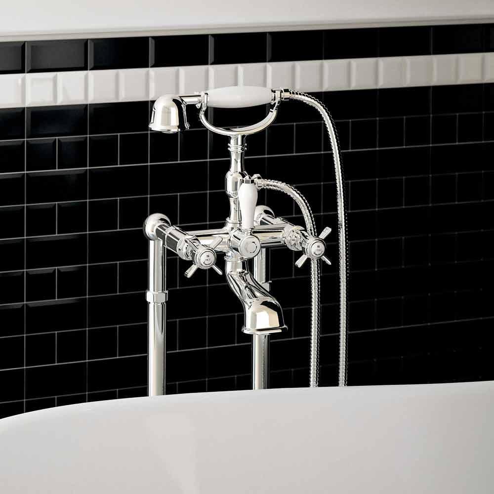 - Lesklá starodávná mosaz: leštěná starožitná mosazná povrchová úprava s bílými keramickými vložkami na rukojetích;
