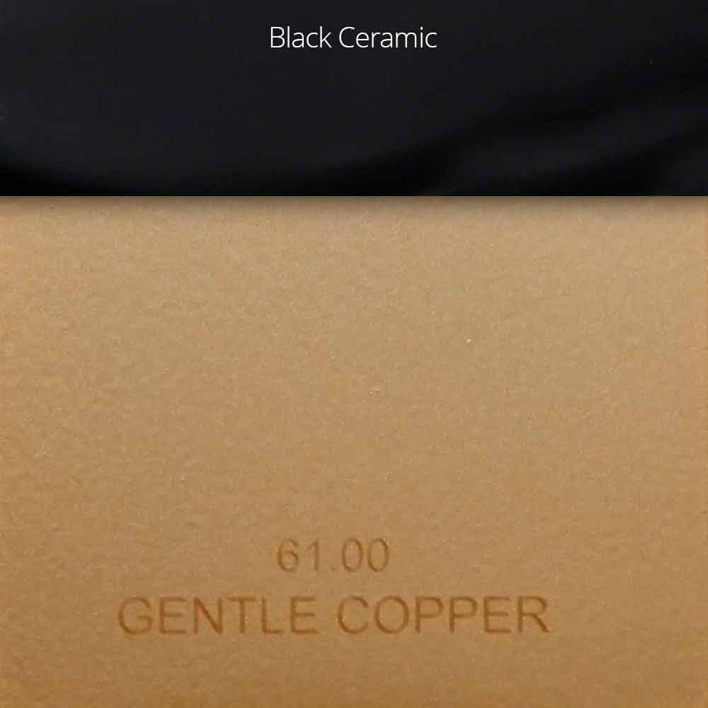 - Jemná měď: matná metalická povrchová úprava z lehké mědi s černými keramickými vložkami na rukojetích;