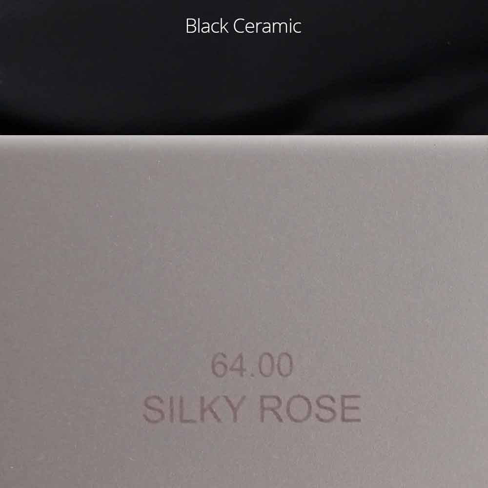 - Silky Rose: matně růžová metalická povrchová úprava s černými keramickými vložkami na rukojetích;