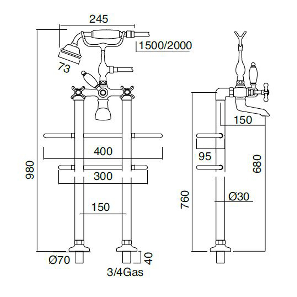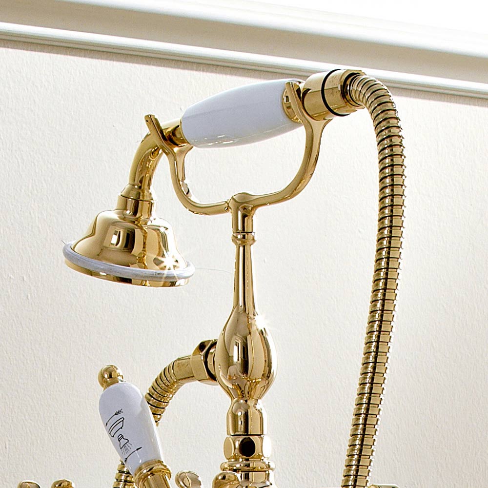 Mosazná klasická stojánková vanová armatura s ruční sprchou, vysoká kvalita, vyrobeno v Itálii.