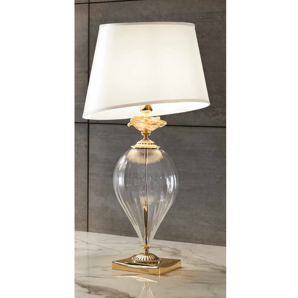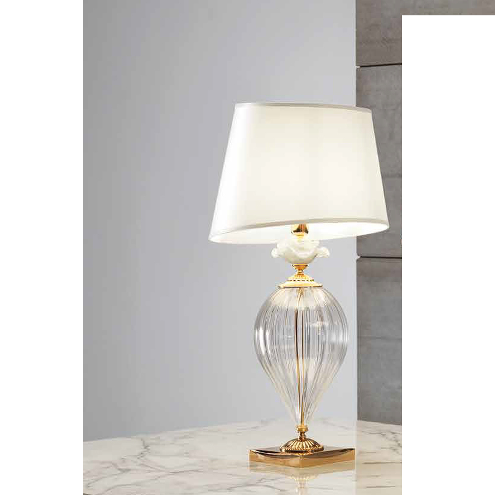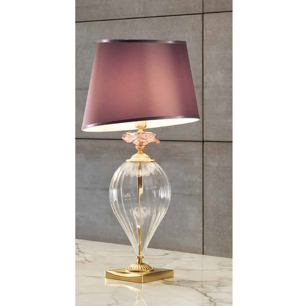 Stolní lampa z ručně vyráběného skla s křišťálovým zdobením, luxusní výroba v Itálii.