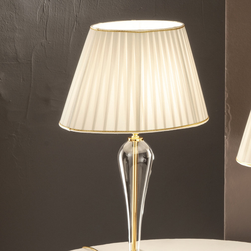 Stolní lampa z ručně vyráběného skla a zlatého kovu, klasický luxus vyrobený v Itálii.