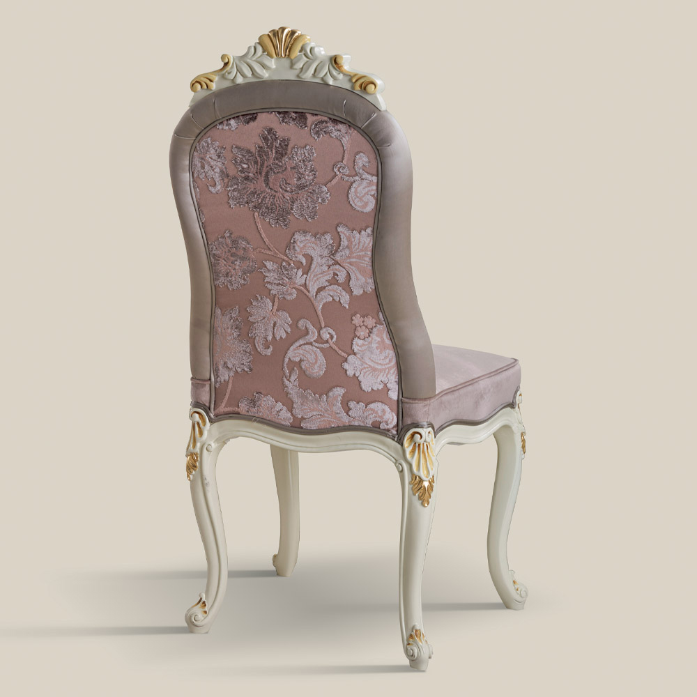 Klasická židle z bílého dřeva a čalouněné látky Made in Italy.