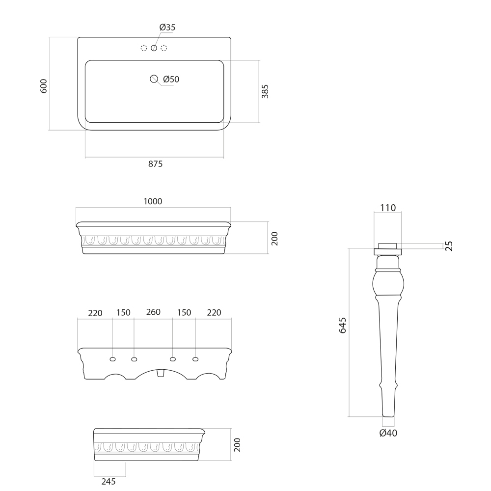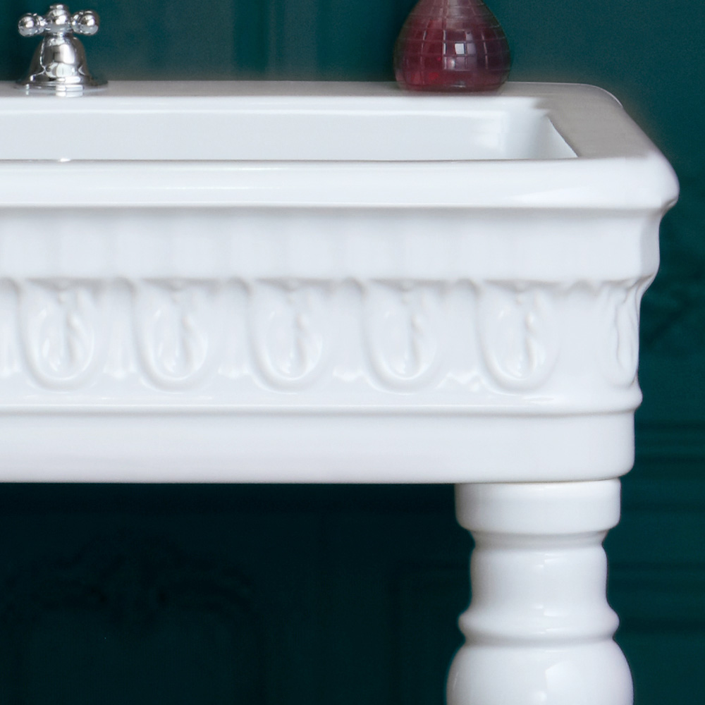 Umyvadlo do konzoly z bílé keramiky ručně vyrobené ve výrobě 100% Made in Italy . Tento majestátní a impozantní, tento nábytkový doplněk s klasickým a rafinovaným designem pramení z touhy dát život řešení schopnému vytvořit dokonalou harmonii jak v klasických prostorech, tak v prostředích s moderním nábytkem, ve kterém vytváří neobvyklý kontrast pro kreativní a originální účinek .