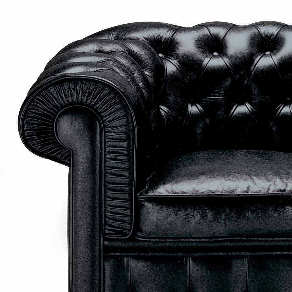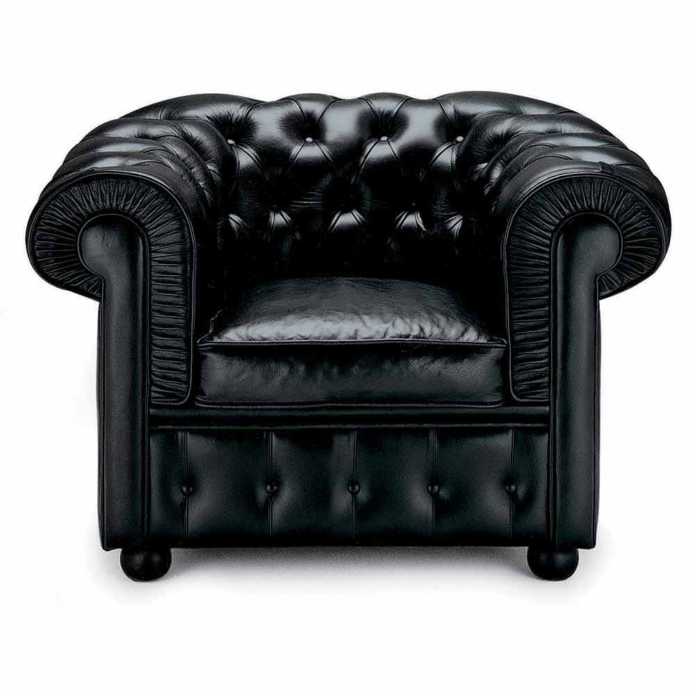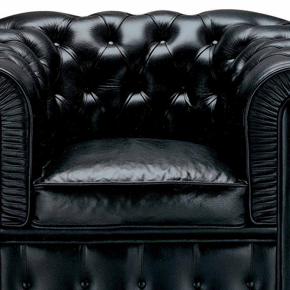 Klasické kožené křeslo s dřevěnými nohami vyrobené v Itálii.