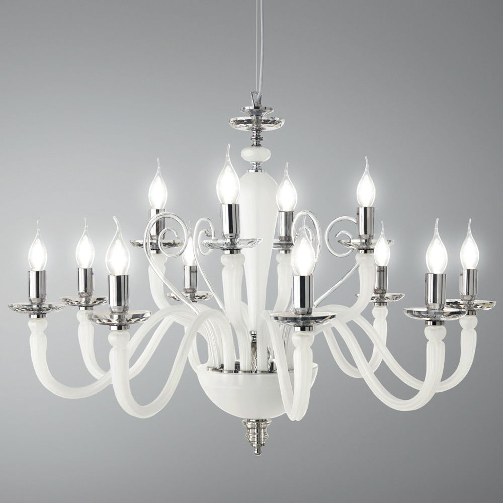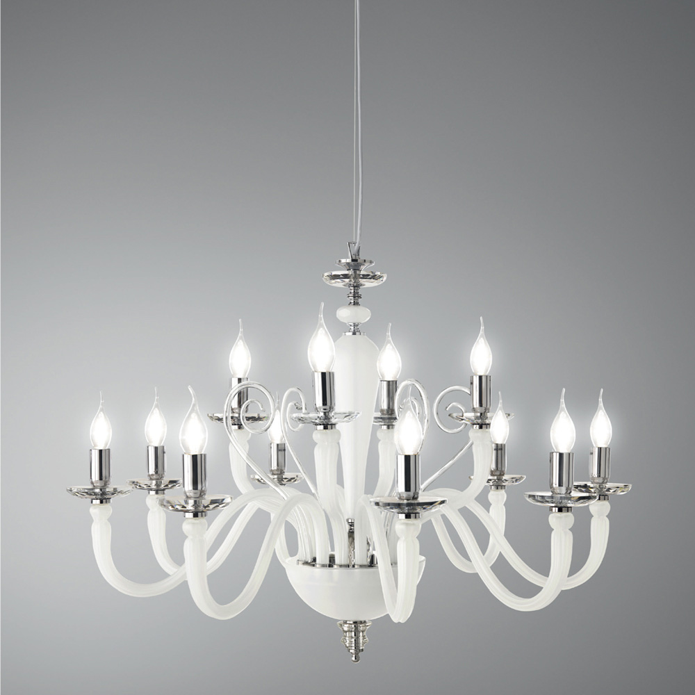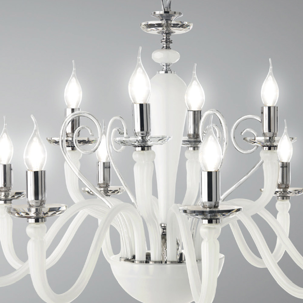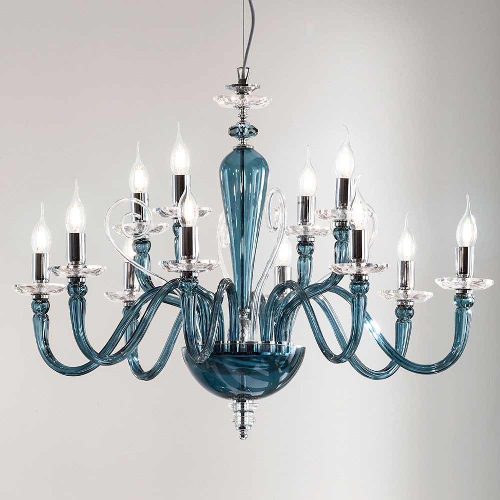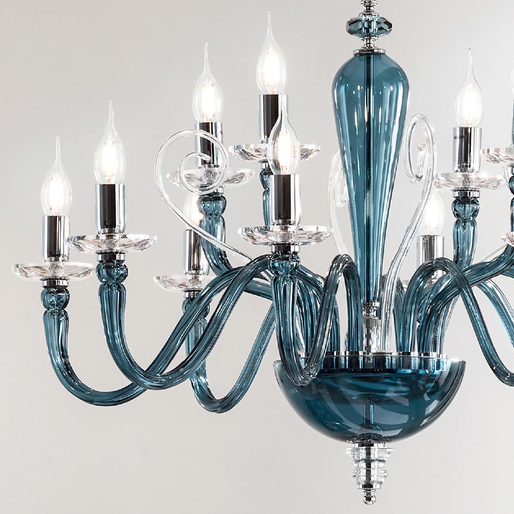 Klasický závěsný lustr s ručně vyráběným sklem a chromem vyrobený v Itálii.