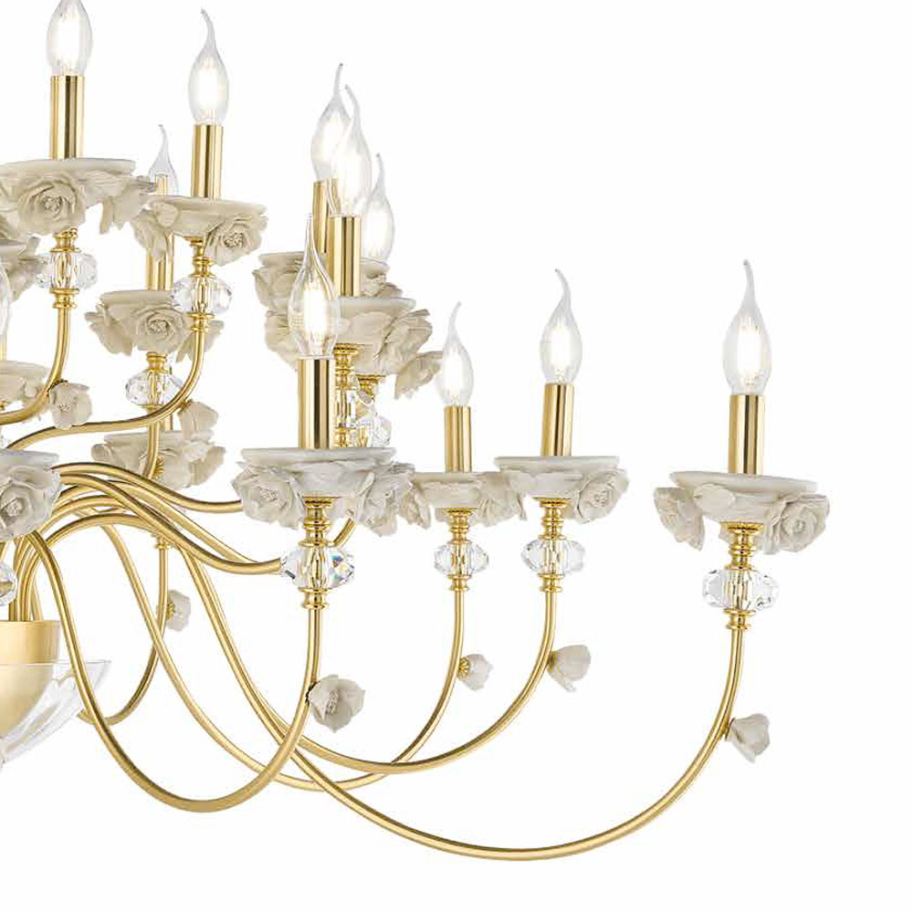 Lustr 30 světel z porcelánu a foukaného skla, luxusní výroba v Itálii.