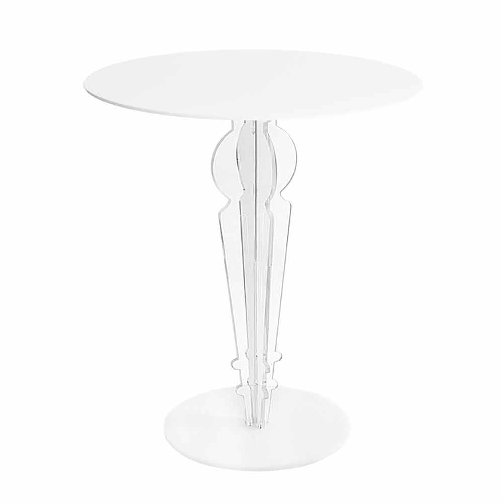 Malý stolek CLES má být reinterpretací luxusních stolů století XVIII, s jedinou centrale nohou. Je vyroben z mimořádně čistého akrylového krystalu PMMA s průhlednou nohou a povrchem v plné bílé barvě.