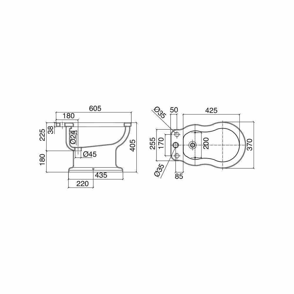 Klasický designový bidet v bílé keramice Paulina, vyrobený v Itálii.