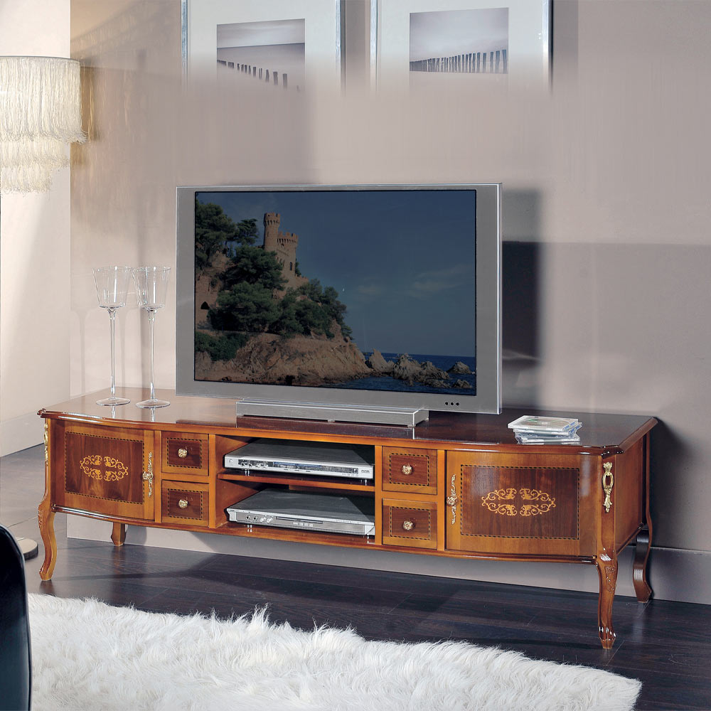 Klasický dřevěný televizní stolek s intarziemi, vyrobený v Itálii