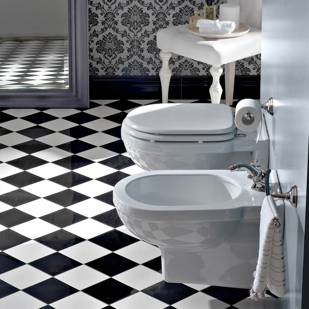 Designový klasický bidet v bílé keramice vyrobené v Itálii.