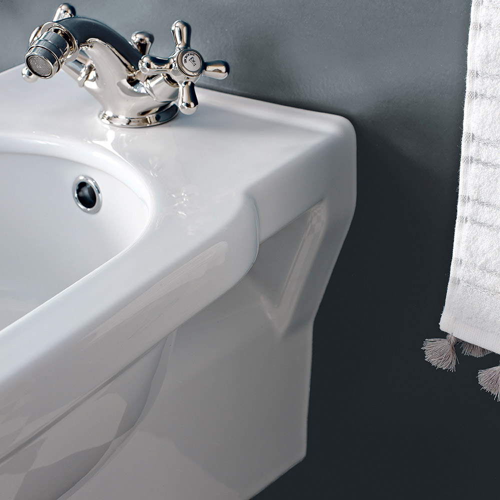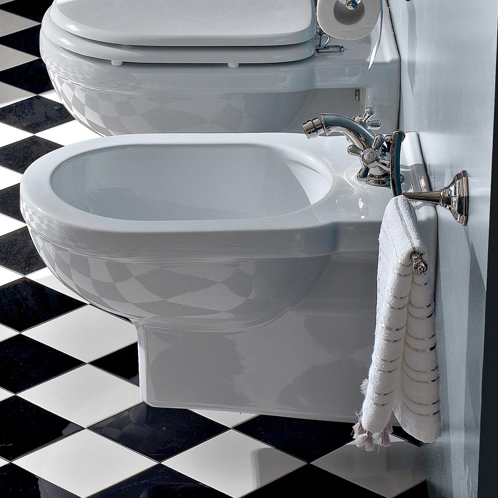 bidet zavěšený na stěně s externím přívodem ručně vyráběný v Itálii v