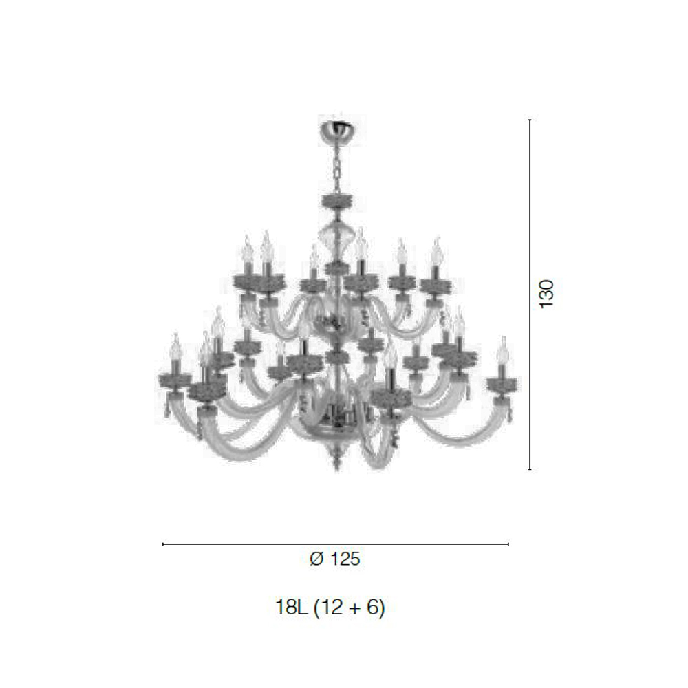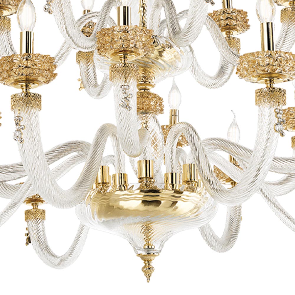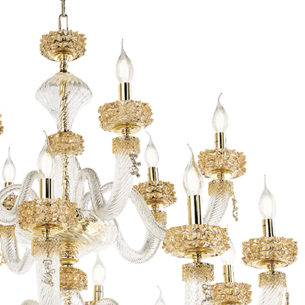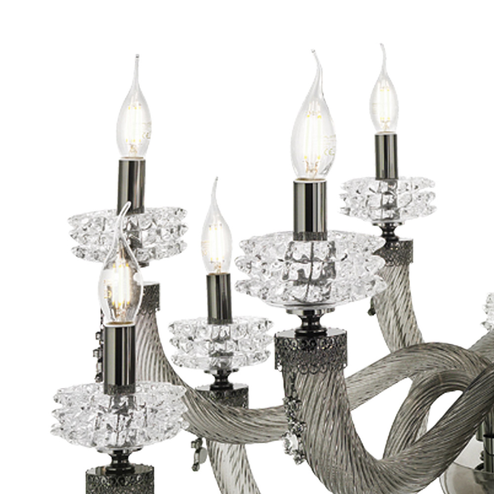 Lustr s 18 světly z ručně vyráběného skla a kovu, italský luxusní design.