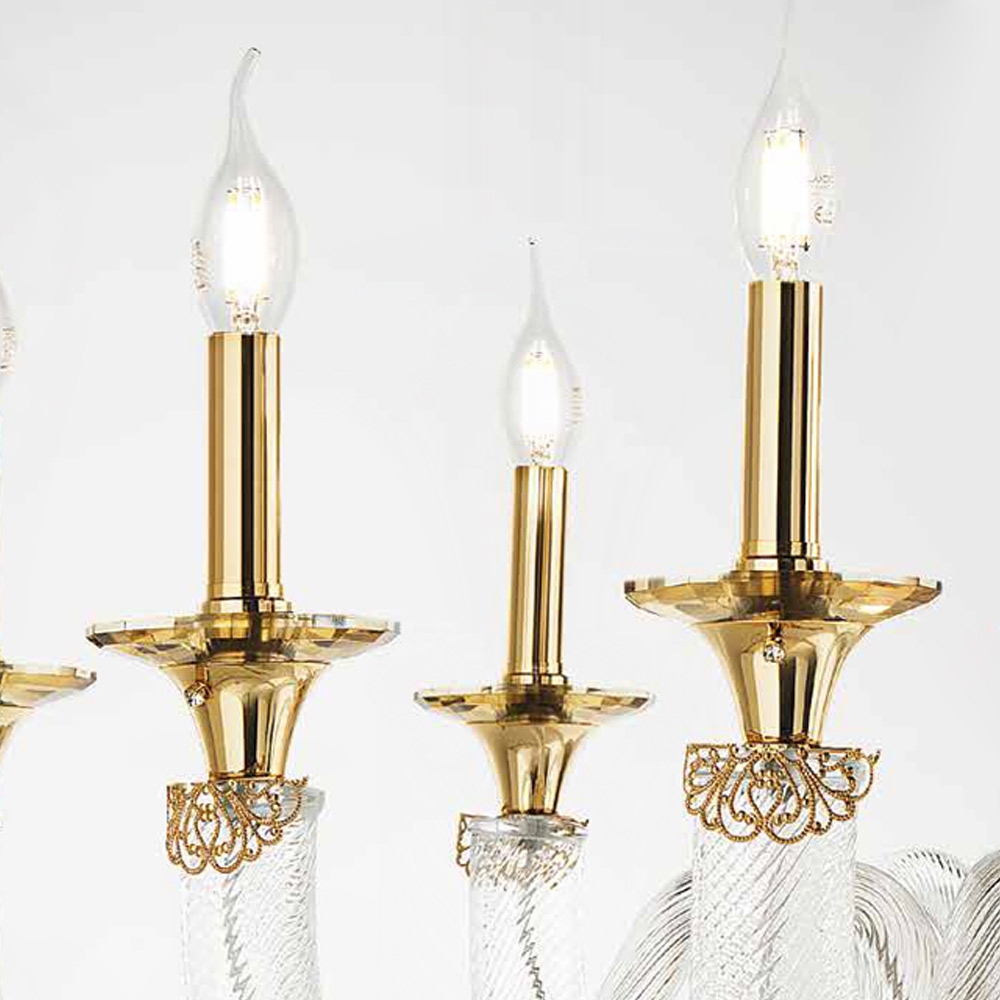 Dostupné povrchové úpravy:- Průhledné skleněné tělo - medové skleněné detaily - lesklý zlatý kov;