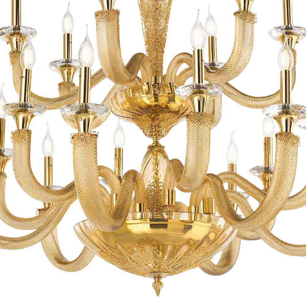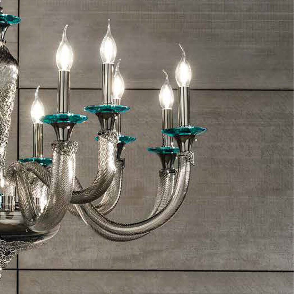 Lustr s 18 světly z ručně vyráběného skla a krystalů, italský luxus.