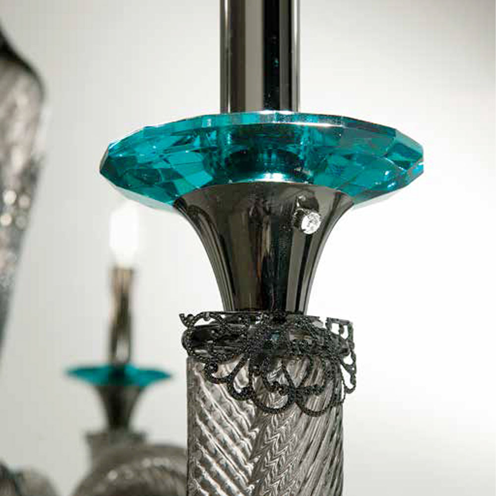 - Tělo z kouřového skla - detaily z tyrkysového skla - leštěný kov;