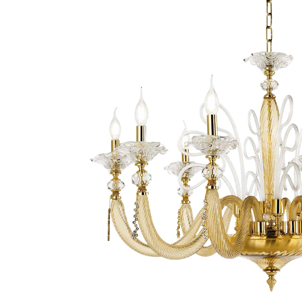 Dostupné povrchové úpravy:- Průhledné skleněné tělo - mléčné bílé skleněné detaily - lesklý zlatý kov;