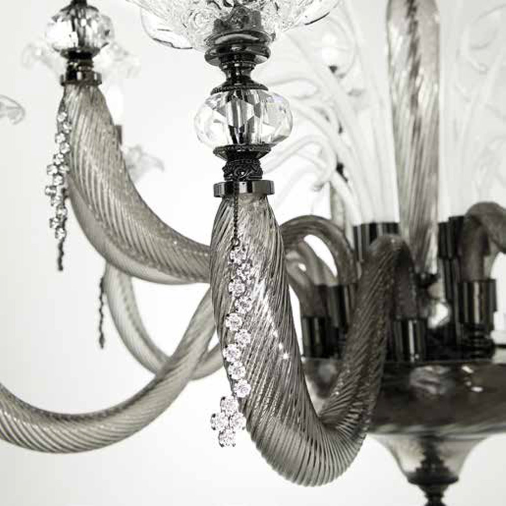 - Tělo z kouřového skla - detaily z průhledného skla - leštěný kov;