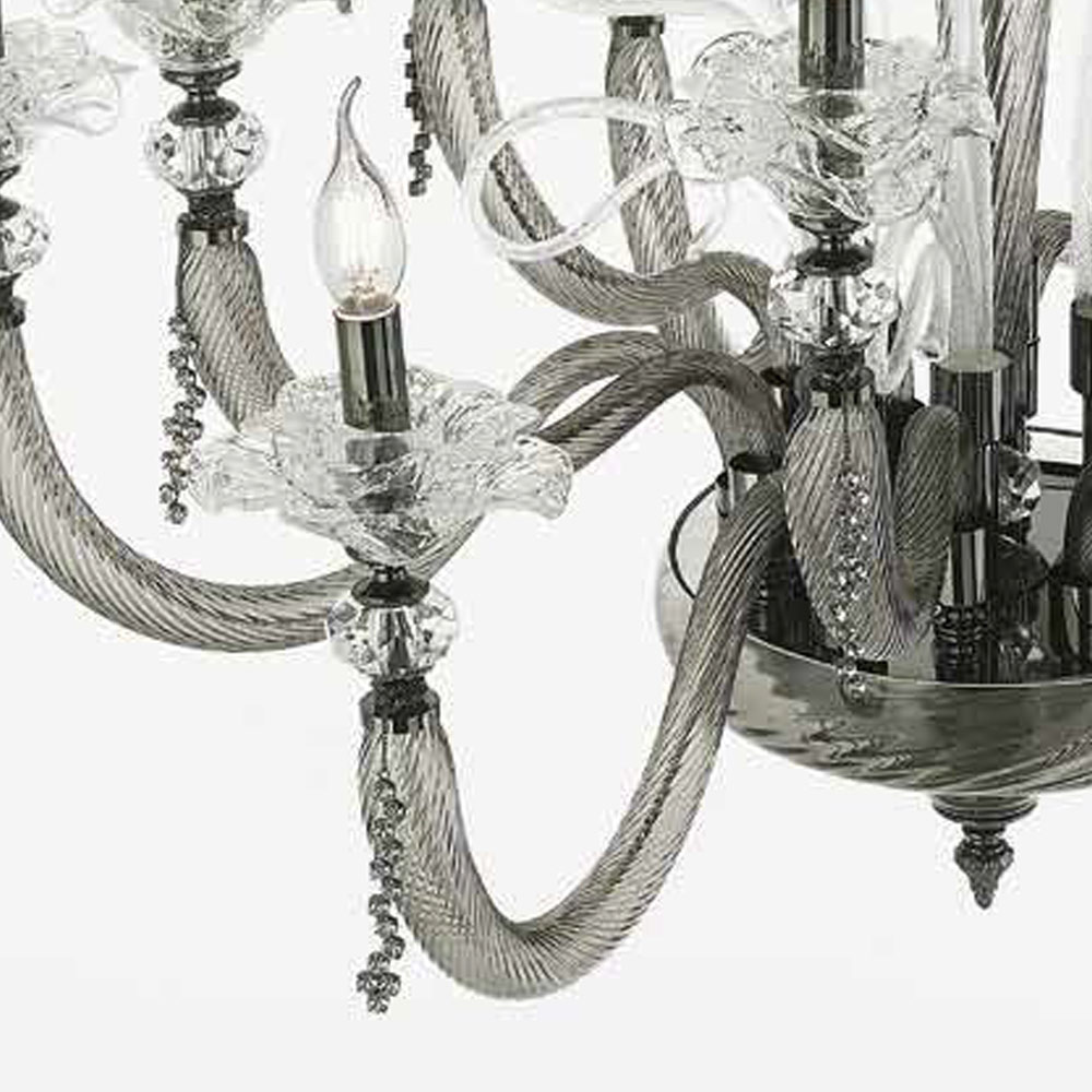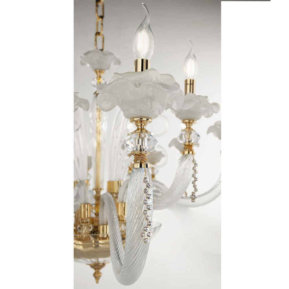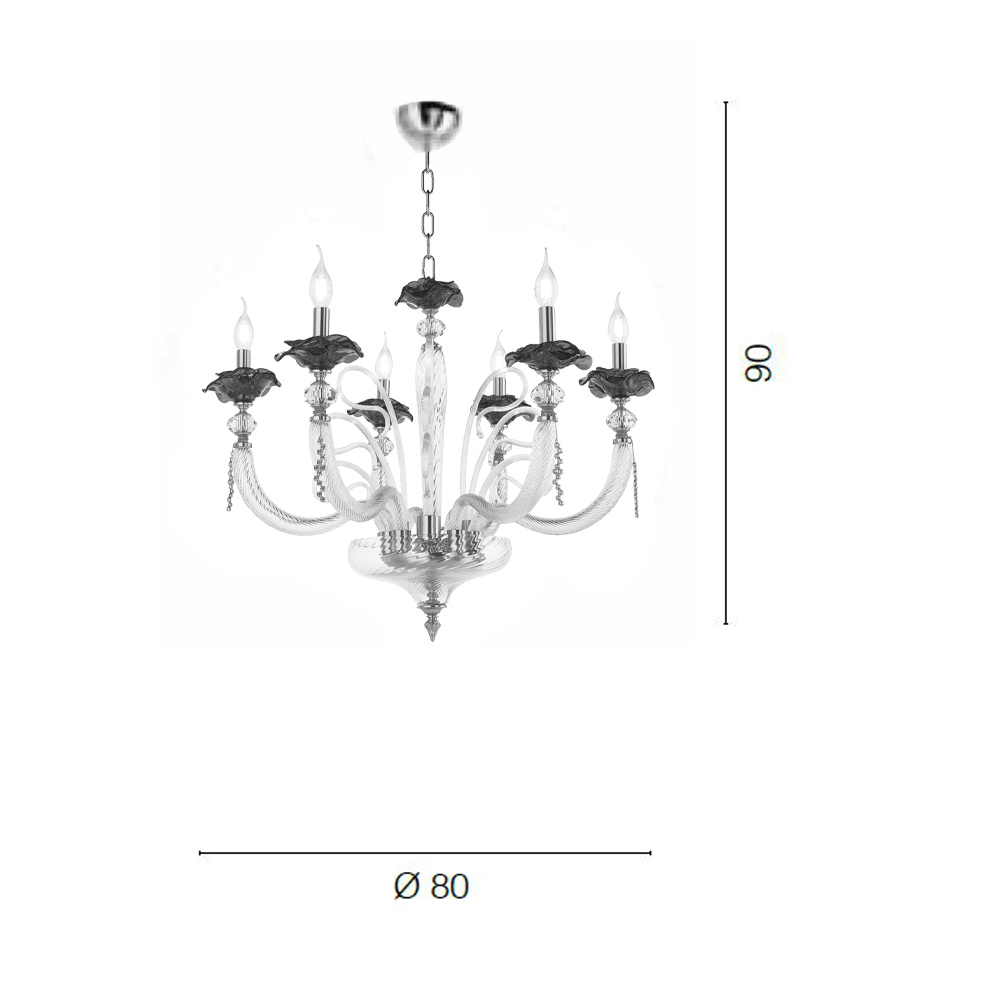 Ručně vyráběný 6 světelný lustr z foukaného skla a květinové dekorace, italský luxus.