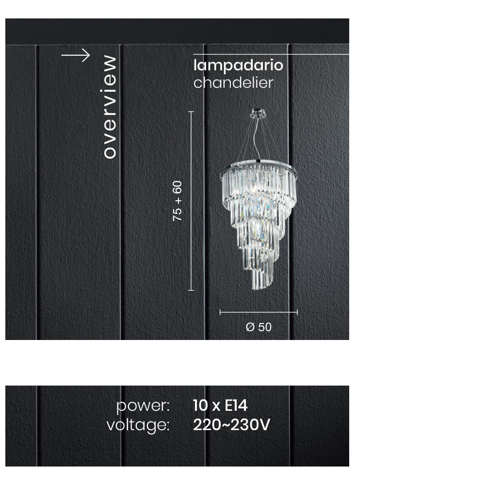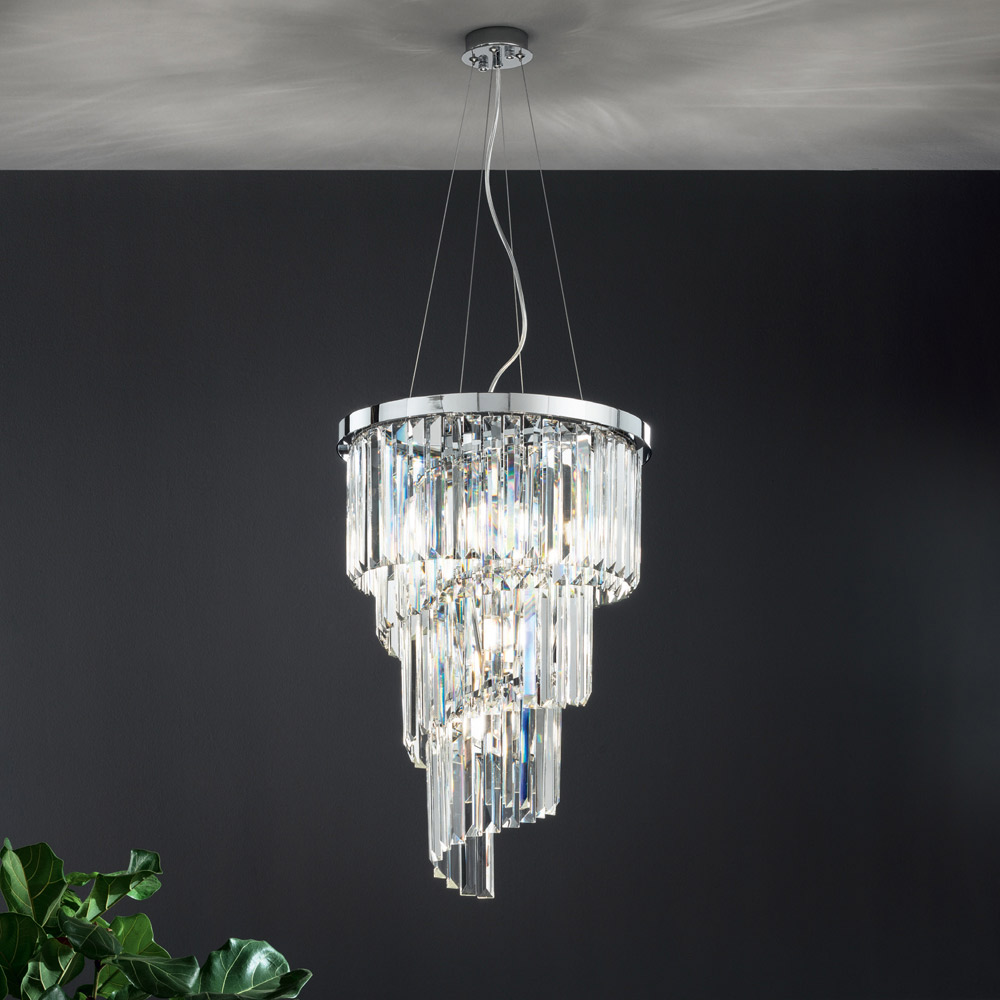 Jeho skutečná silná stránka spočívá v dekorativních prvcích z broušeného křišťálu , které zdobí a osvětlují každou místnost vkusně a charakterem, ve směsi stylu, třídy a inovace.
