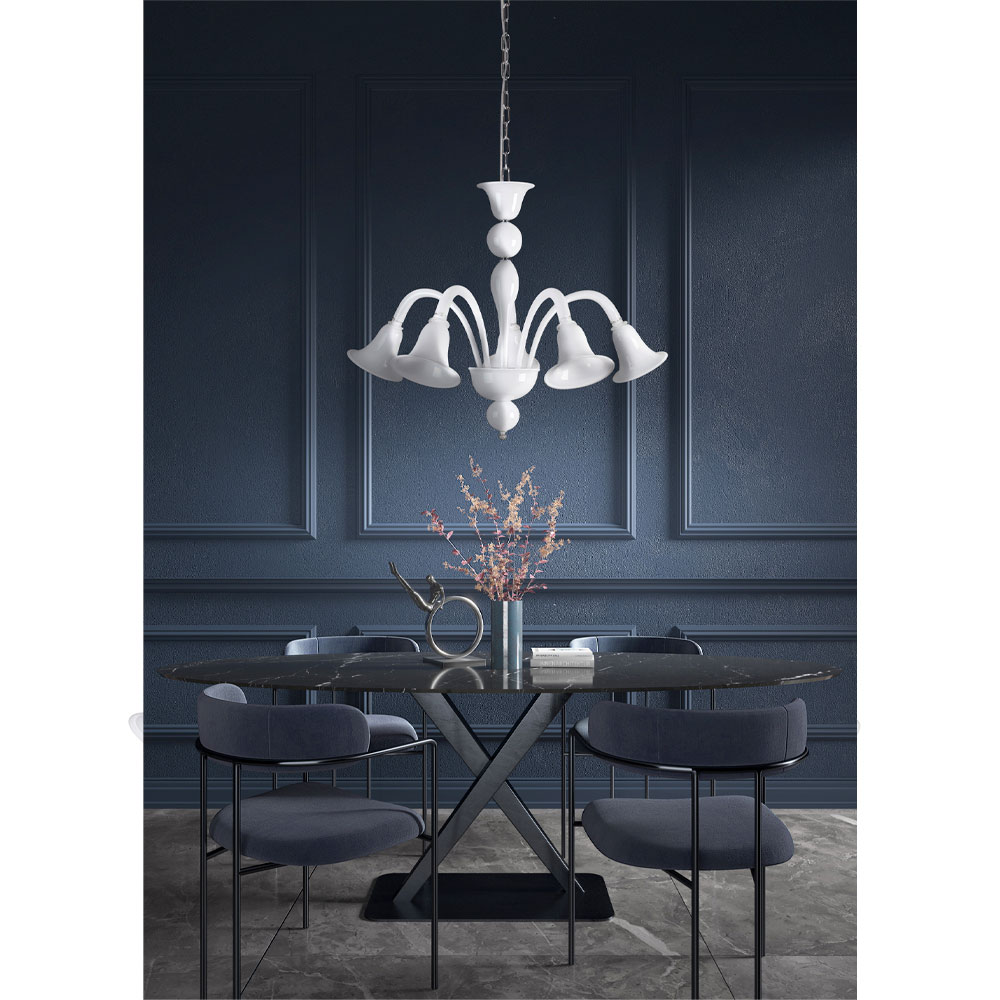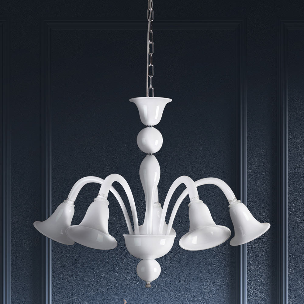 Ručně foukaný bílý skleněný lustr v Benátkách, klasický styl.