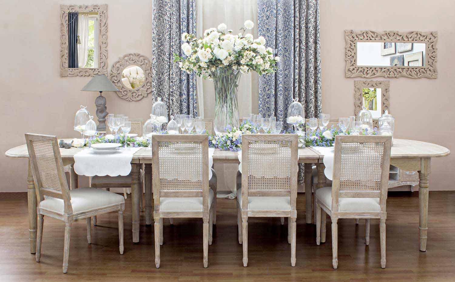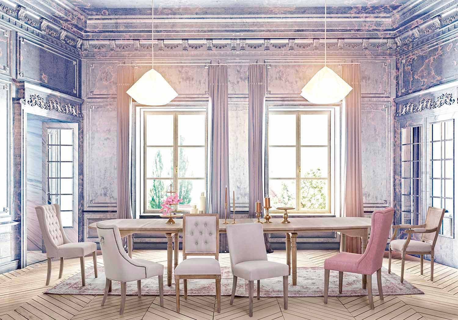 Roztažitelný jídelní stůl až 382 cm vyrobený z masivního dubového dřeva.