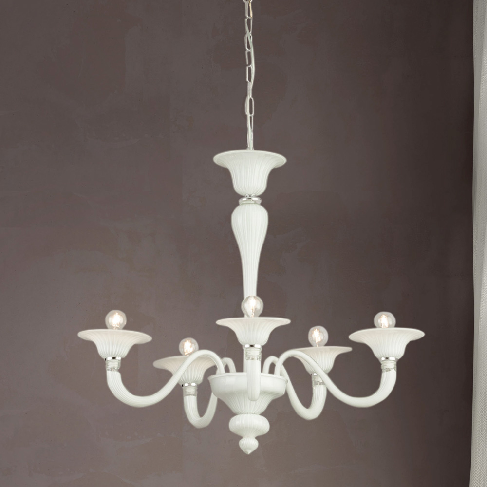 Klasický ručně foukaný bílý lustr z benátského skla.
