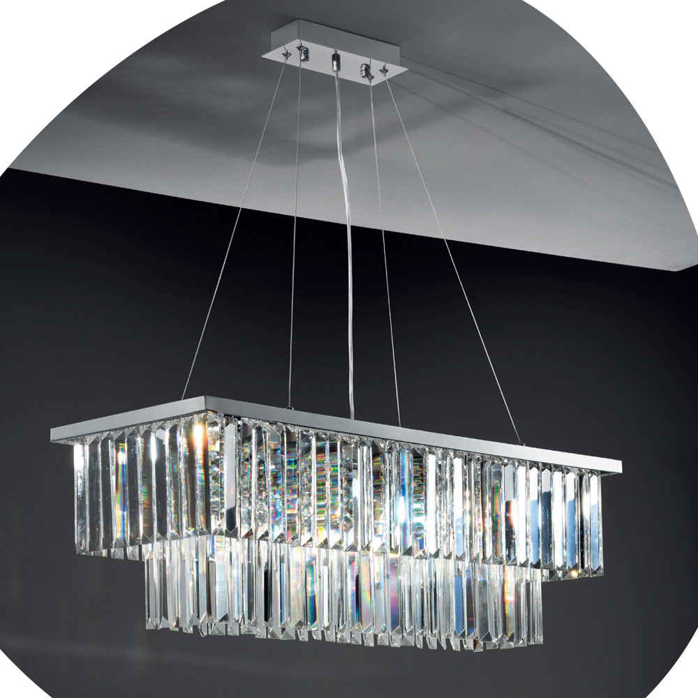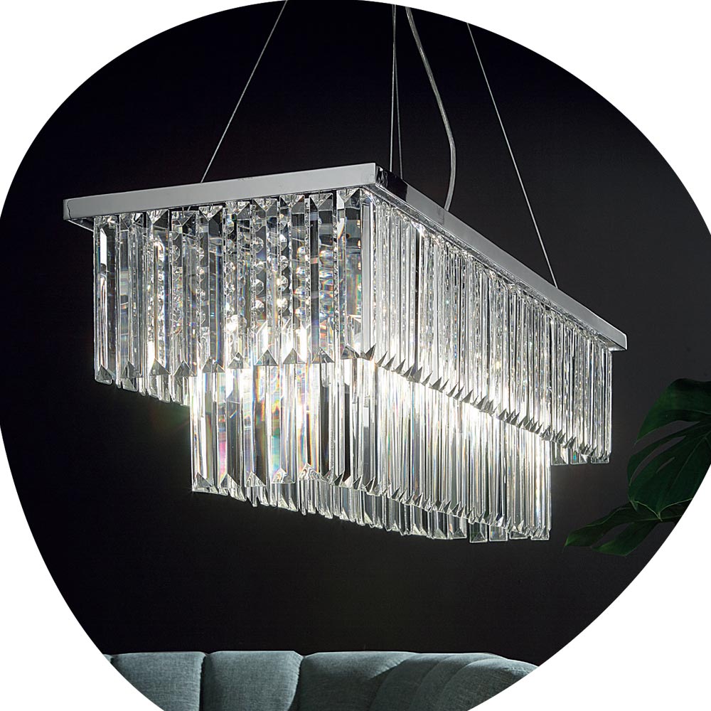 Jeho skutečná silná stránka spočívá v dekorativních prvcích z broušeného křišťálu , které zdobí a osvětlují každou místnost vkusně a charakterem, ve směsi stylu, třídy a inovace.