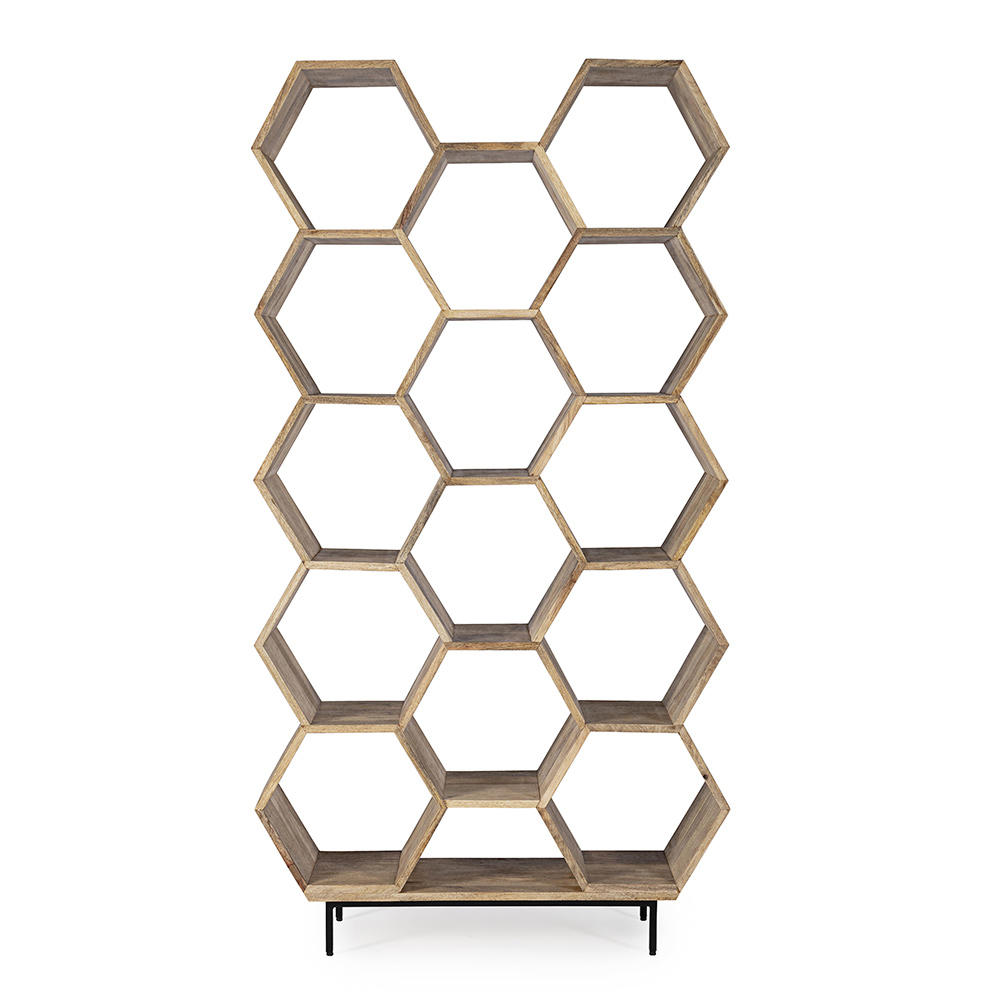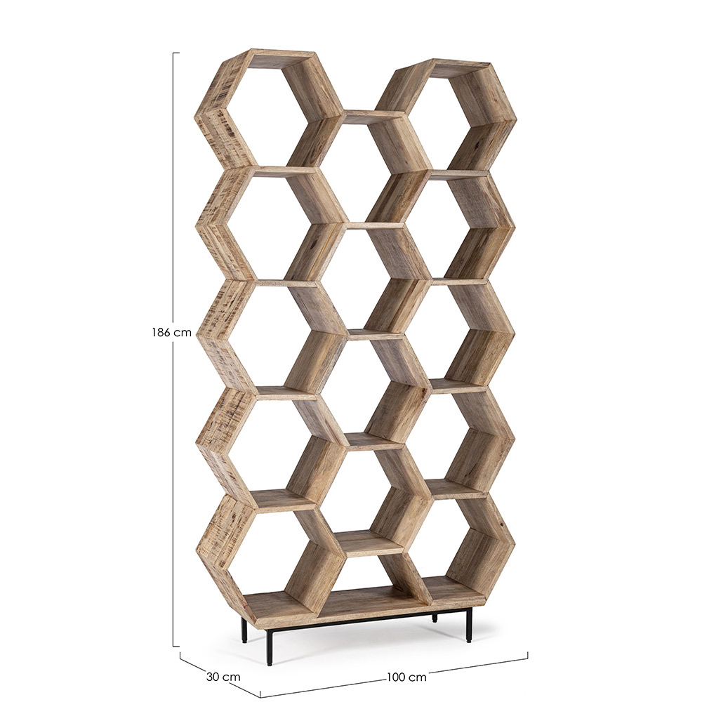 Knihovna do obývacího pokoje v designu voštinové z mangovníkového dřeva - Carida