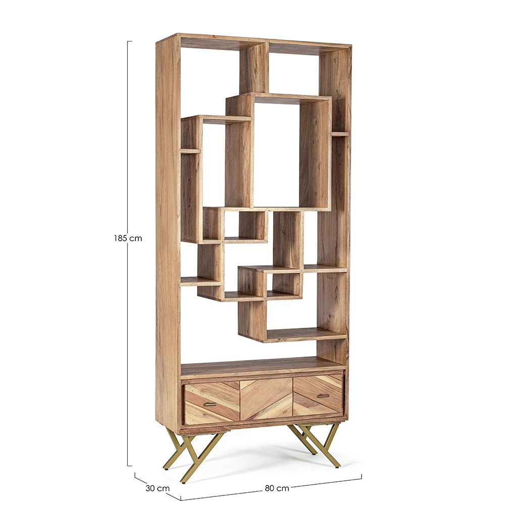 Knihovna do obývacího pokoje v originálním designu akátového dřeva.