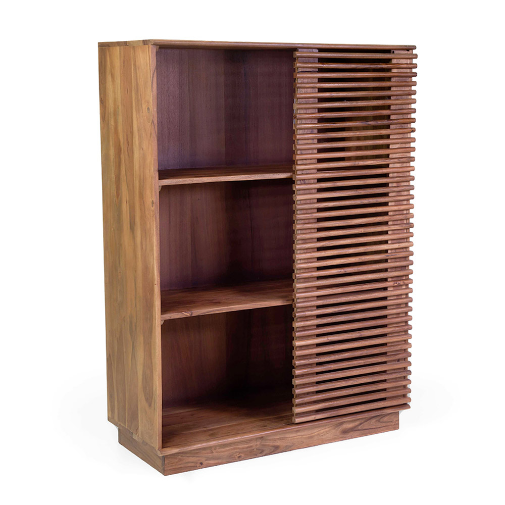 Vneste do svého domova eleganci a funkčnost s touto knihovnou z akátového dřeva s praktickými posuvnými dvířky . Akáciové dřevo s přírodní kresbou a teplými tóny dělá z tohoto kusu nábytku jedinečný a sofistikovaný kus nábytku.