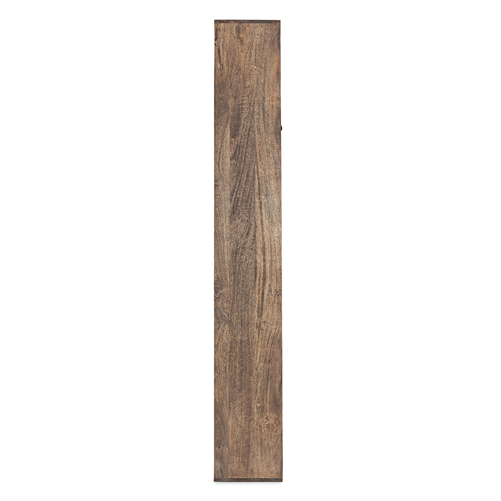 Tato knihovna do obývacího pokoje má strukturu mangového dřeva s MDF zadní stranou.