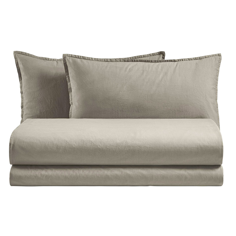 dvoulůžkovou soupravou z čisté bavlny v barvě oděvu. Měkká a prodyšná textura bavlny zajišťuje bezkonkurenční pohodlí, zatímco technika barvení oděvů poskytuje bohatou a dlouhotrvající barvu, která vydrží praní po vyprání. Tato sada, která je ideální pro ty, kteří chtějí kombinovat styl a funkčnost, obsahuje povlak na přikrývku, odpovídající spodní prostěradla a povlaky na polštáře, vše navrženo tak, aby vám nabídlo maximální pohodlí a dodalo vašemu pokoji nádech sofistikovanosti.