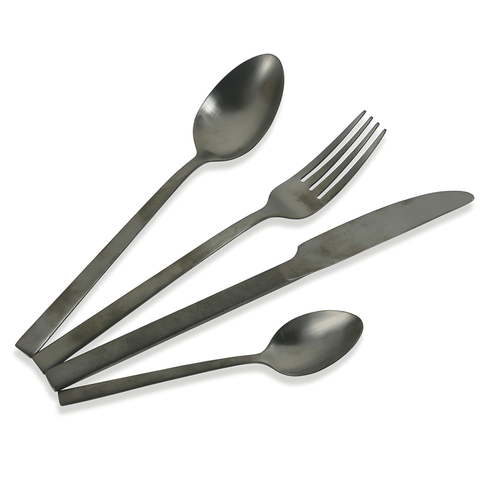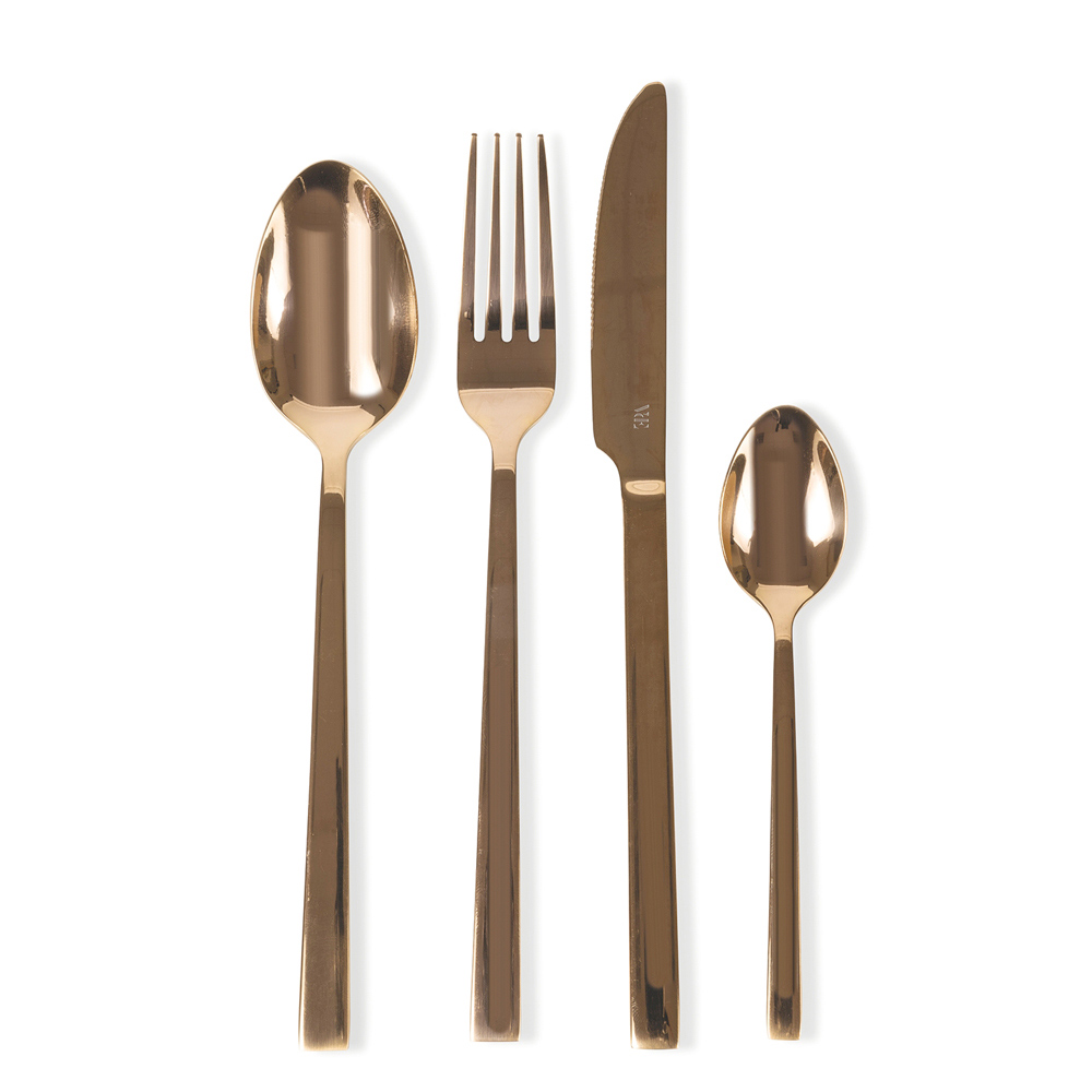 Sada designových příborů z lesklé nebo matné nebo černé měděné oceli, 24 kusů.