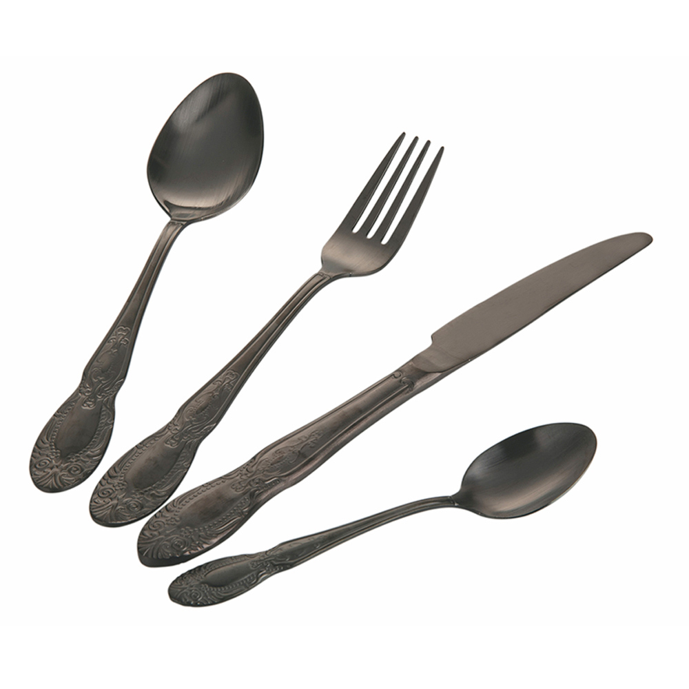 Kompletní sada příborů v saténovém zlatém nebo černém provedení 24 kusů.