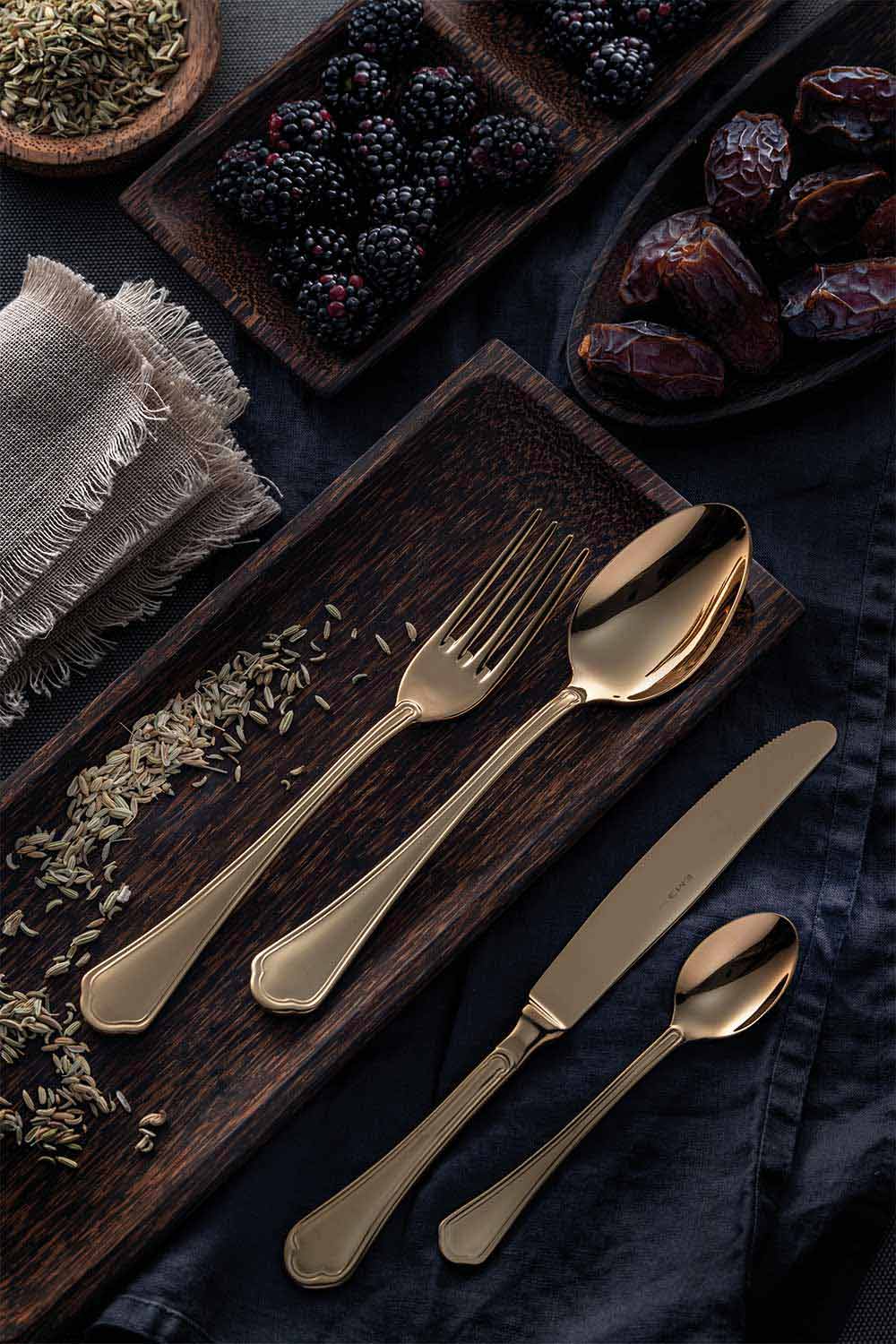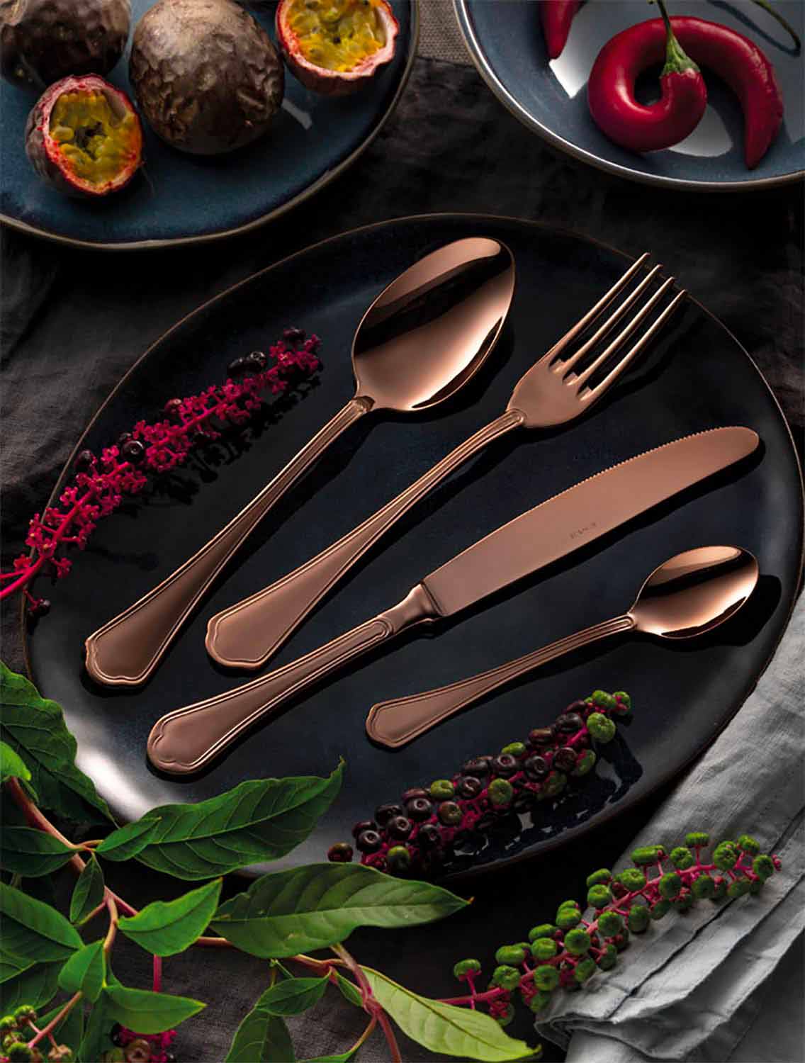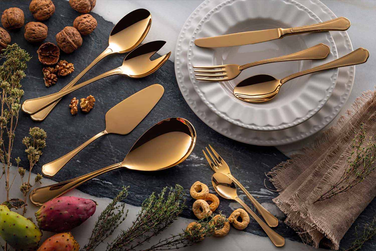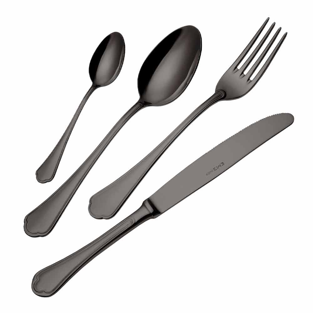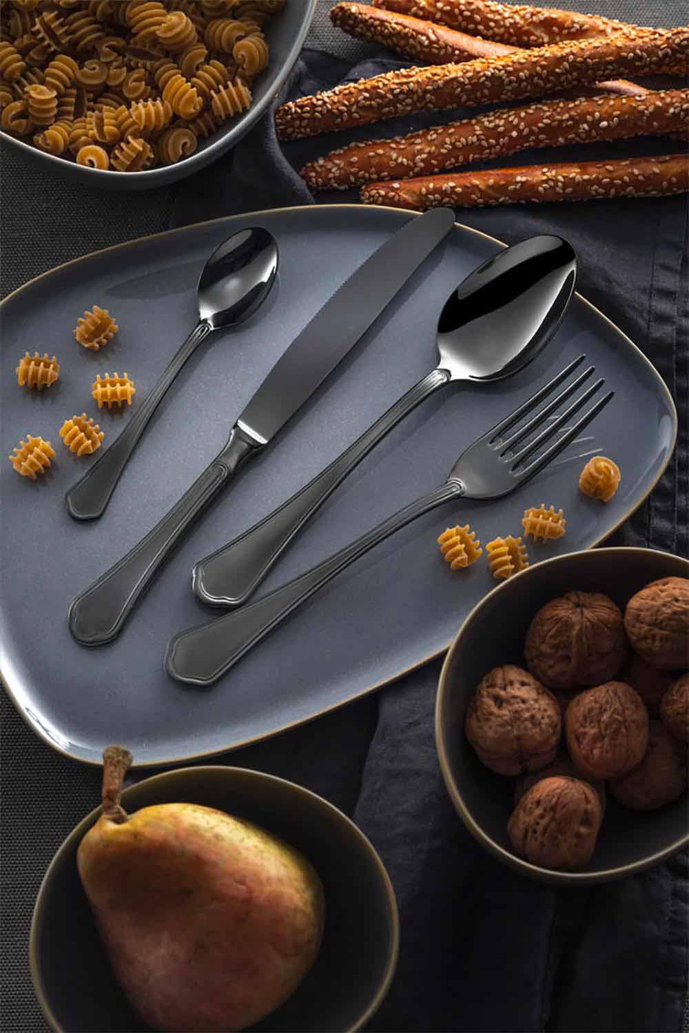 24 příborů z nerezové oceli, kompletní sada v 5 klasických designových provedeních vyrobených v Itálii.