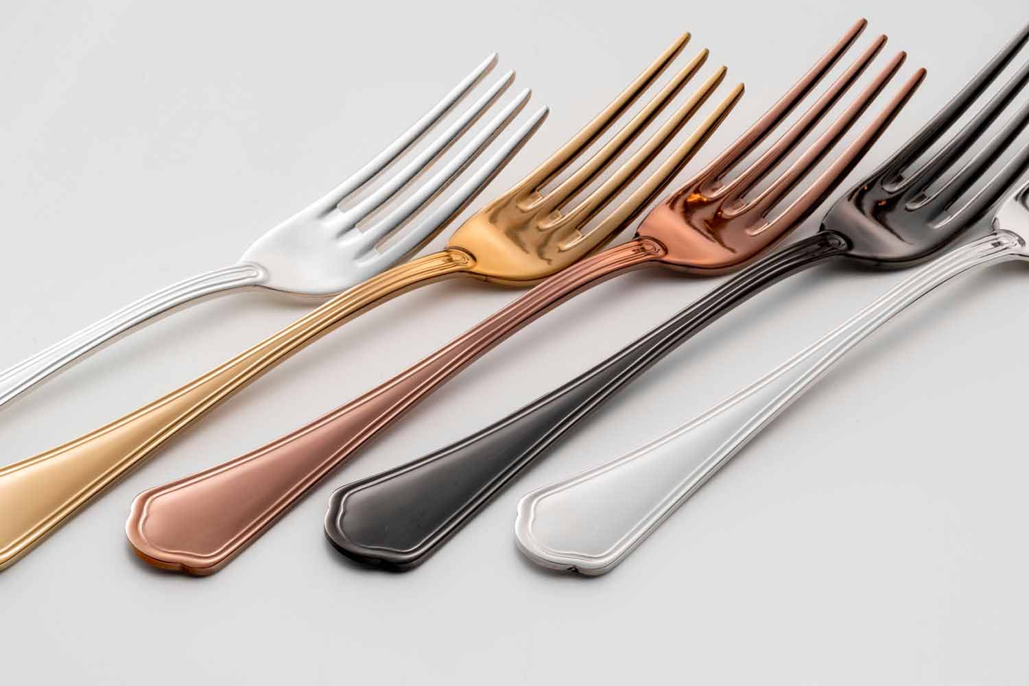 PVD je zkratka pro Physical Vapor Deposition, což je technologie používaná k barvení oceli ve speciálních vakuových komorách, kde se stříkají páry velmi tenkých kovů, které kondenzují na příborech. Toto ošetření, s řadou nádherných barevných odstínů, kromě zkrášlení příborů, zvyšuje jejich