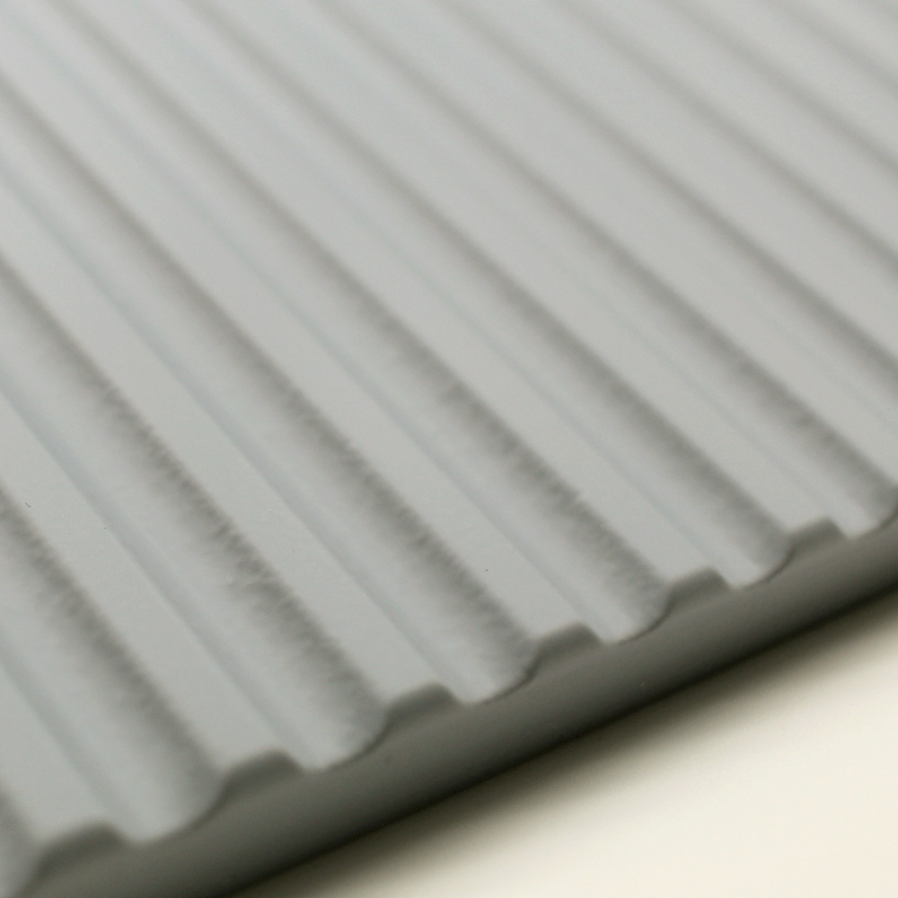 základny s 1 zásuvkou z žebrované šedé MDF a desky z bílé MDF,
