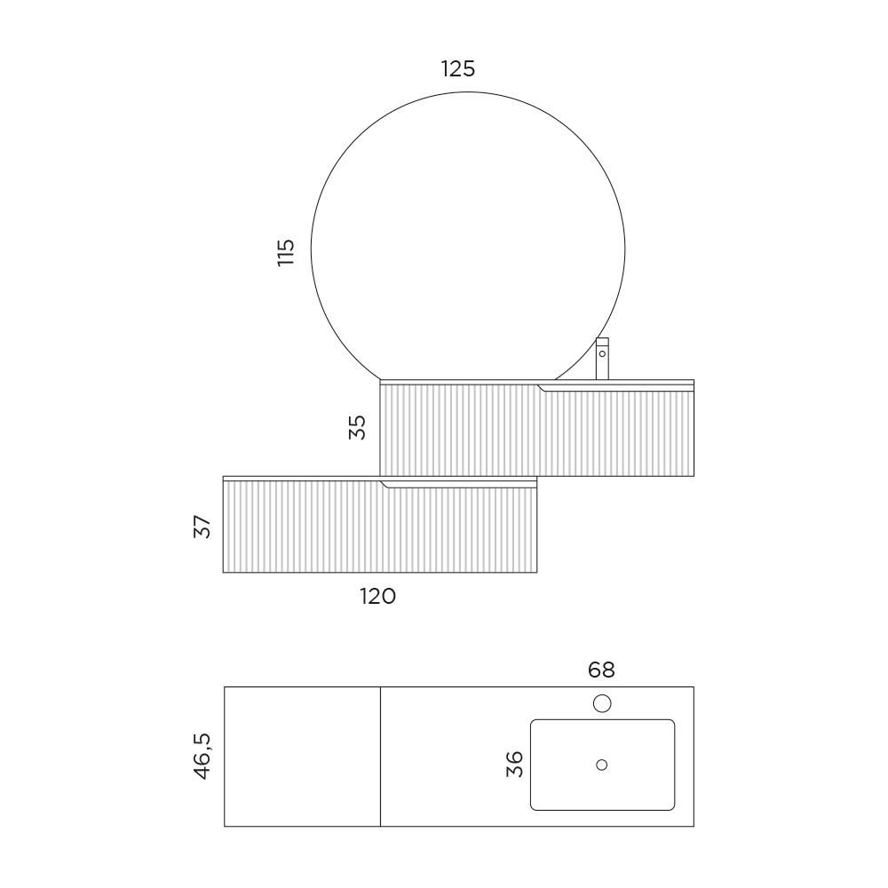 - Umyvadlo: Délka 121 x Hloubka 46,5 x Výška 1,6 cm - Délka mísy 53 cm