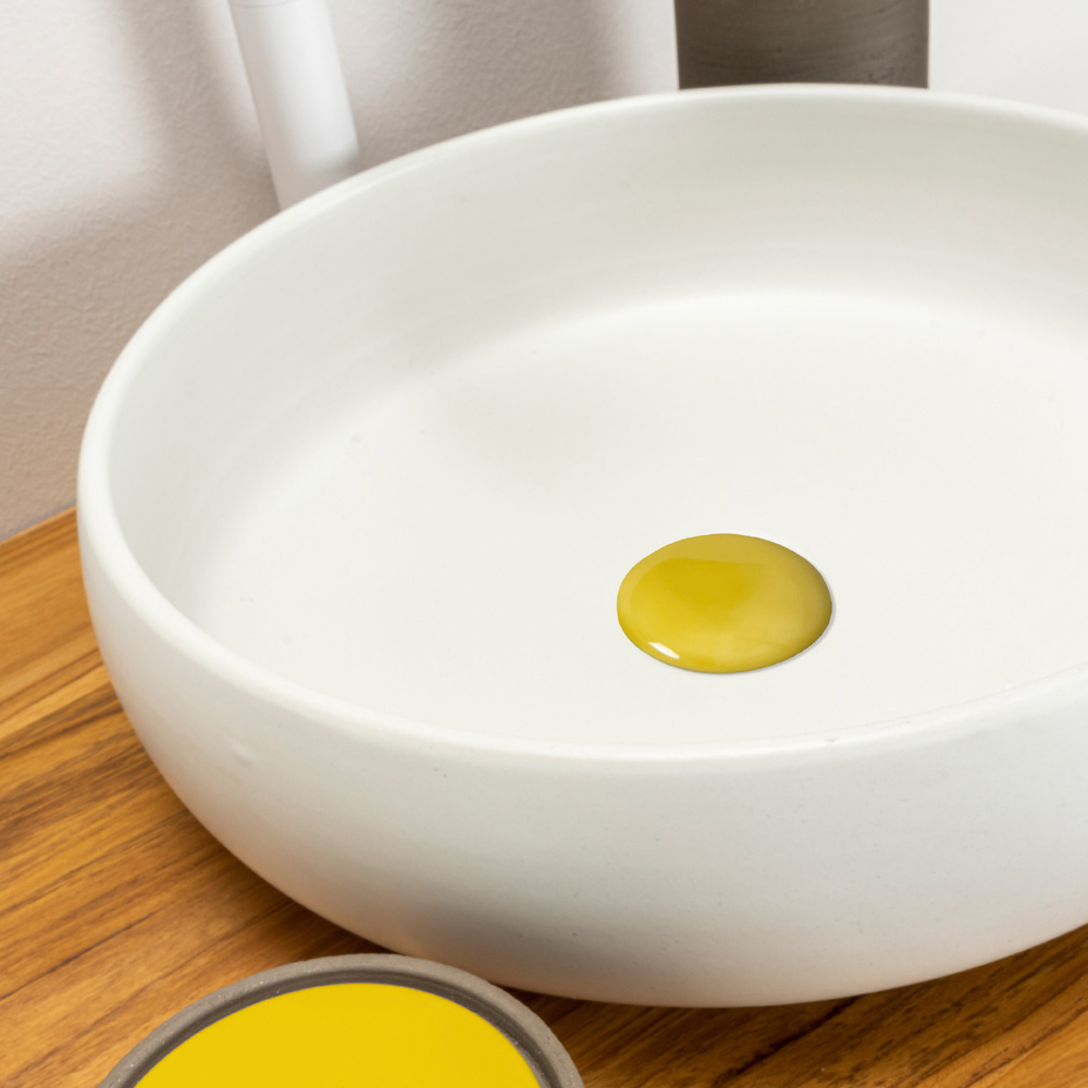 žáruvzdorné hlíny a tmavých zemin v bílé povrchové úpravě se žlutým přehozem je