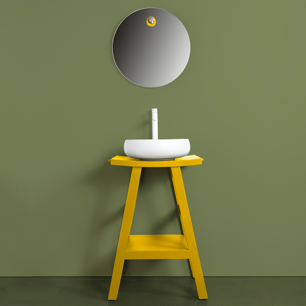 Nástěnné zrcadlo , které je součástí koupelnových doplňků, italské výroby, je kompletní s otvorem na zavěšení, zakončeno ručně soustruženým