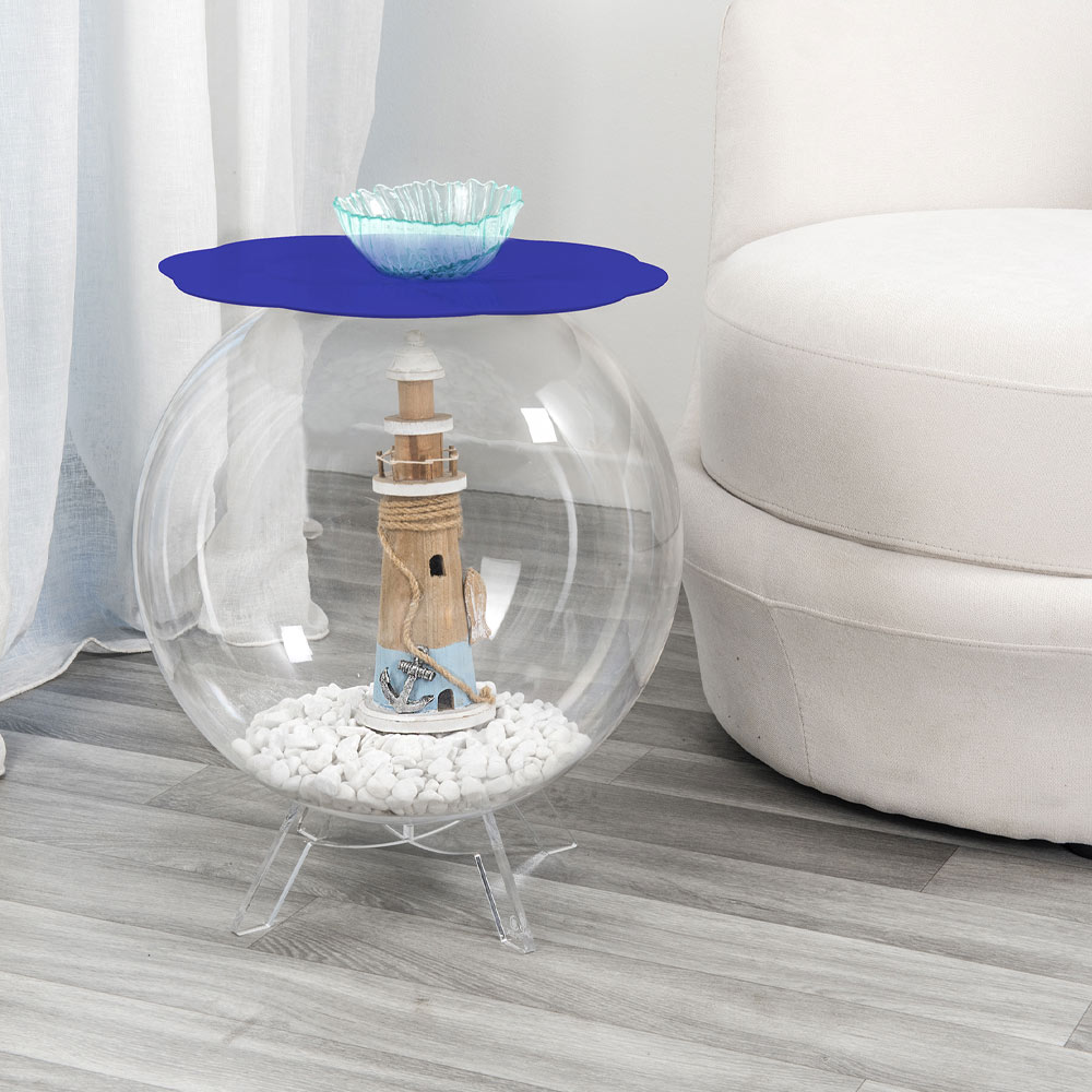 Tabulka / plexisklo nádoba z sférické struktury mohou být použity jako vázy na květiny, jako je akvárium, jako obal na hraček nebo jako prádla. Transparentnost Biffy tabulce je kus diskrétním designem, snadno umístit v domácnosti činí. Police je vyrobena z PMMA o 100% z plexiskla modré barvy panenského polymeru. Z plexiskla je odolný proti nárazu, pružné, odolné a tepelně izolační. Jas a jas zůstávají konstantní a beze změny v průběhu času. Z plexiskla PMMA z panenského polymeru používá netoxické, hypoalergenní, bez zápachu a antibakteriální. Recyklovatelné 100%. Počala navržený a vyrobený v Itálii, s italskými materiály.