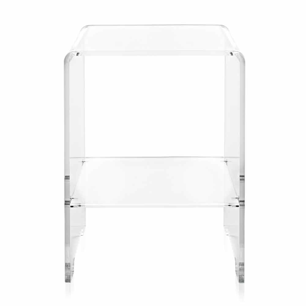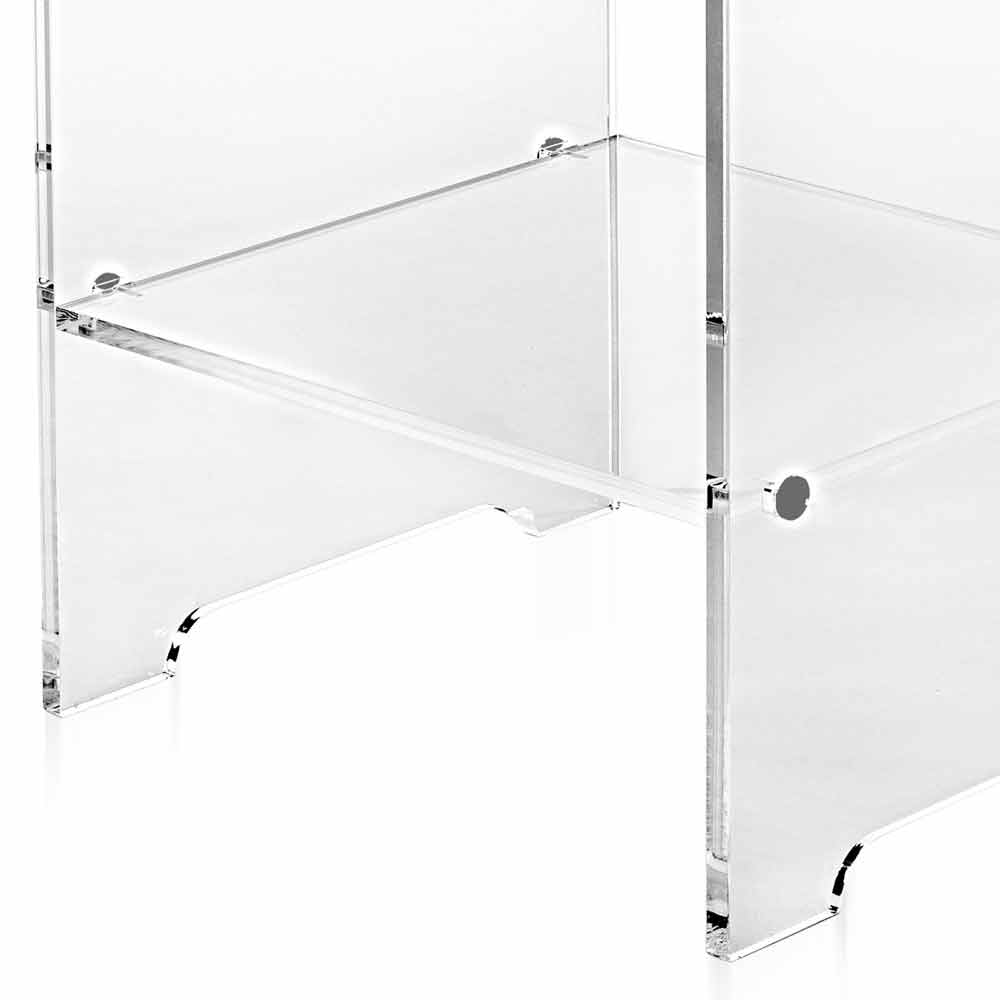 Vedle postele jako šikovný nočním stolku vedle gauče jako konferenční stolek, vedle vany jako věšákem na ručníky a kosmetické výrobky: univerzální stolek zcela transparentní od 10mm, dosud nepoužitý polymer, 100% z plexiskla, laser-cut ohnuta při vysokých teplotách. Důležitou tloušťka činí konstrukci zcela samonosná. Fyzikální a technické vlastnosti plexiskla (šoku, stres-odolné, trvanlivé, tepelně izolační), aby tento výrobek doplňkem praktické a funkční nábytek, vhodný pro jakékoliv prostředí. Jas a jas zůstávají konstantní a beze změny v průběhu času. Z plexiskla PMMA z panenského polymeru používá netoxické, hypoalergenní, bez zápachu a antibakteriální. Recyklovatelné 100%. Počala navržený a vyrobený v Itálii, s italskými materiály.