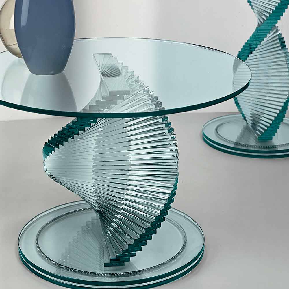Tento konferenční stolek do obývacího pokoje se vyznačuje svým jedinečným a mimořádně elegantním designem zcela vyrobeným z průhledného skla.