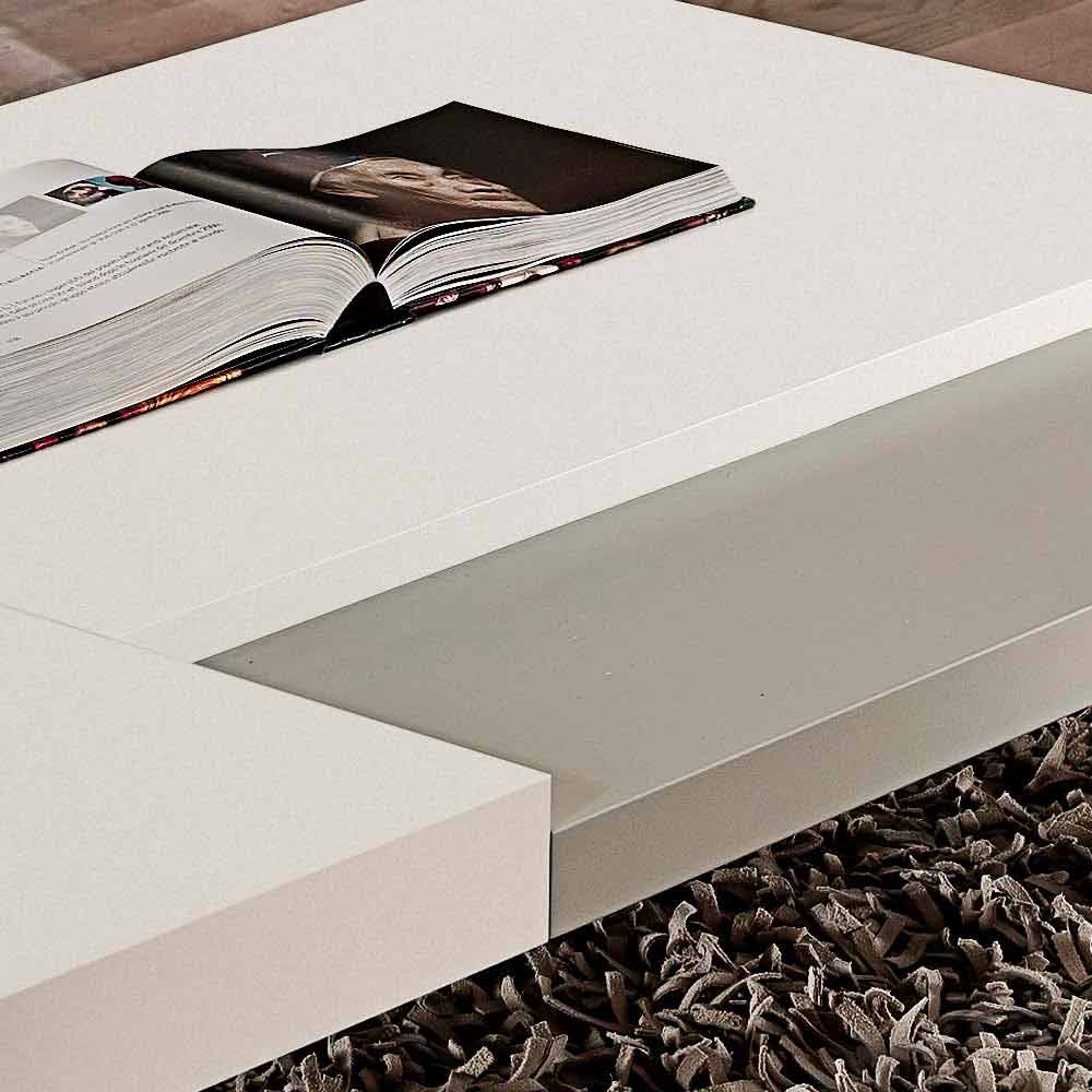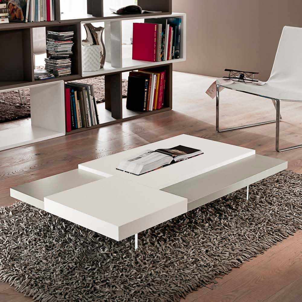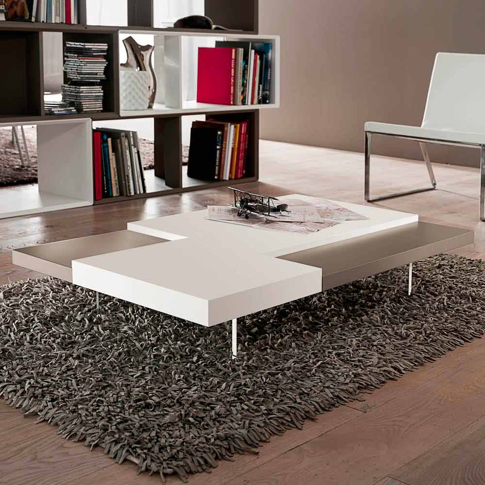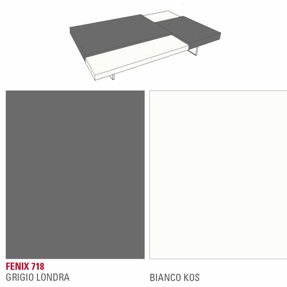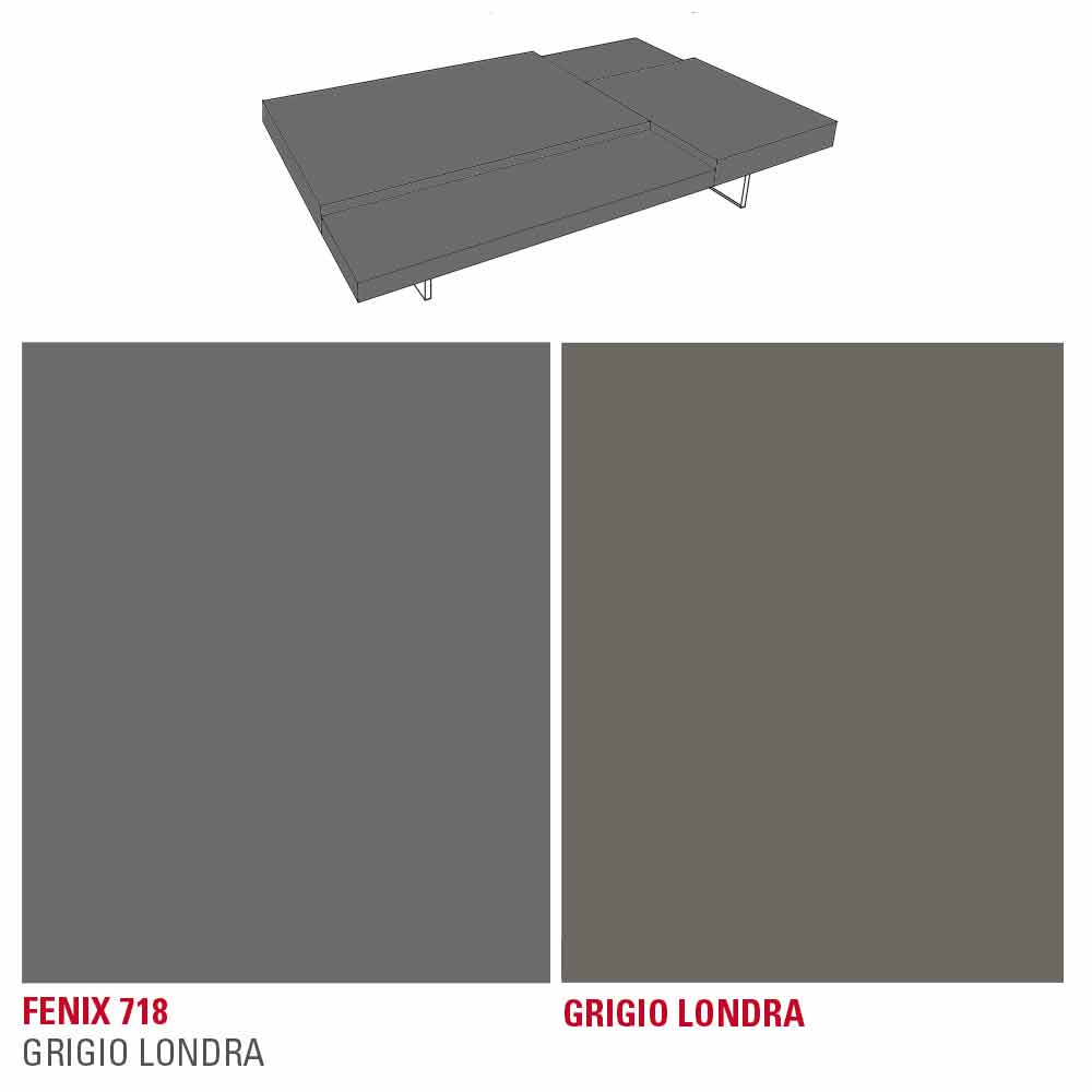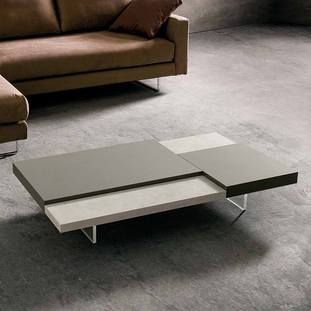 průhlednými polymetylmetakrylátovými nožičkami. V každém obývacím pokoji je nezbytná přítomnost konferenčního stolku, který kromě praktické a funkční nosné plochy dodává nábytku harmonii a dotváří jeho estetiku díky podmanivým a originálním liniím a tvarům. Tento kus nábytku ztělesňuje všechny základní vlastnosti dokonalého konferenčního stolku a ukazuje se jako vynikající nápad pro ty, kteří rádi vyzdobují své prostory prvky s jednoduchým, ale působivým stylem. Zvláštní tvar topů umístěných v různých výškách hraje důležitou roli v designu produktu, protože nabízí exkluzivní hru kontrastů. Kromě toho