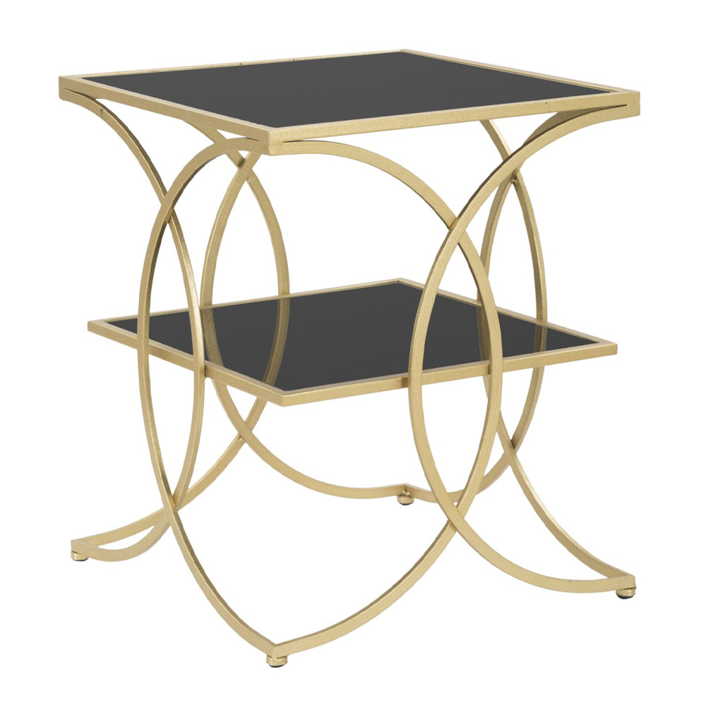 Konferenční stolek ze zlaceného železa s dvojitou deskou z černého skla.